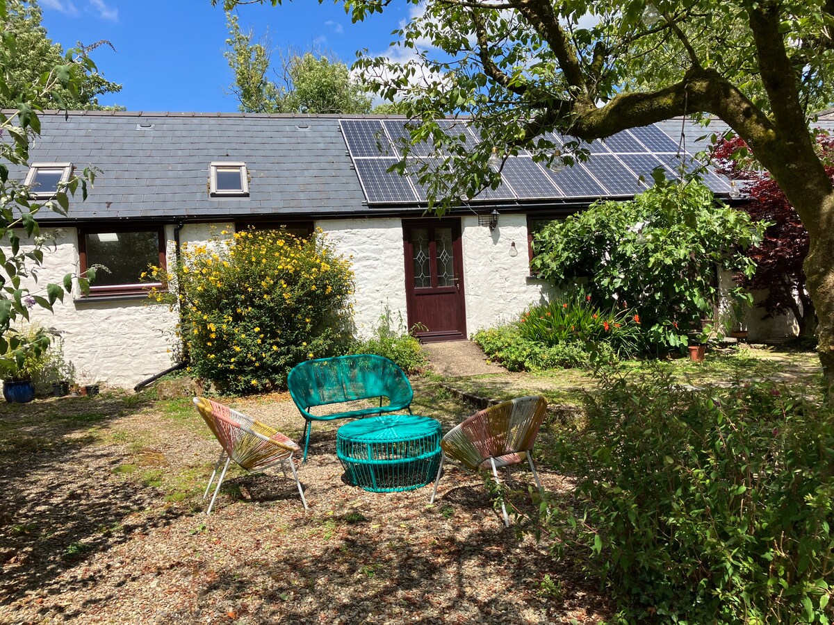 Romantic Pembrokeshire cottage in beautiful 3-acre grounds with sauna, natural swimming pond (rain dependent), games room & kayaks. Hill walks on the doorstep, stunning beaches & cliff walks nearby. Stargaze from a comfy king-size bed. Snuggle up by a wood-burning stove (free wood). Large bathroom with bath, shower & underfloor heating. Well equipped kitchen with coffee machine. Covered outdoor seating area with firepit & bbq. Fibre internet, smart TV (Netflix etc). 2 well-behaved dogs welcome.