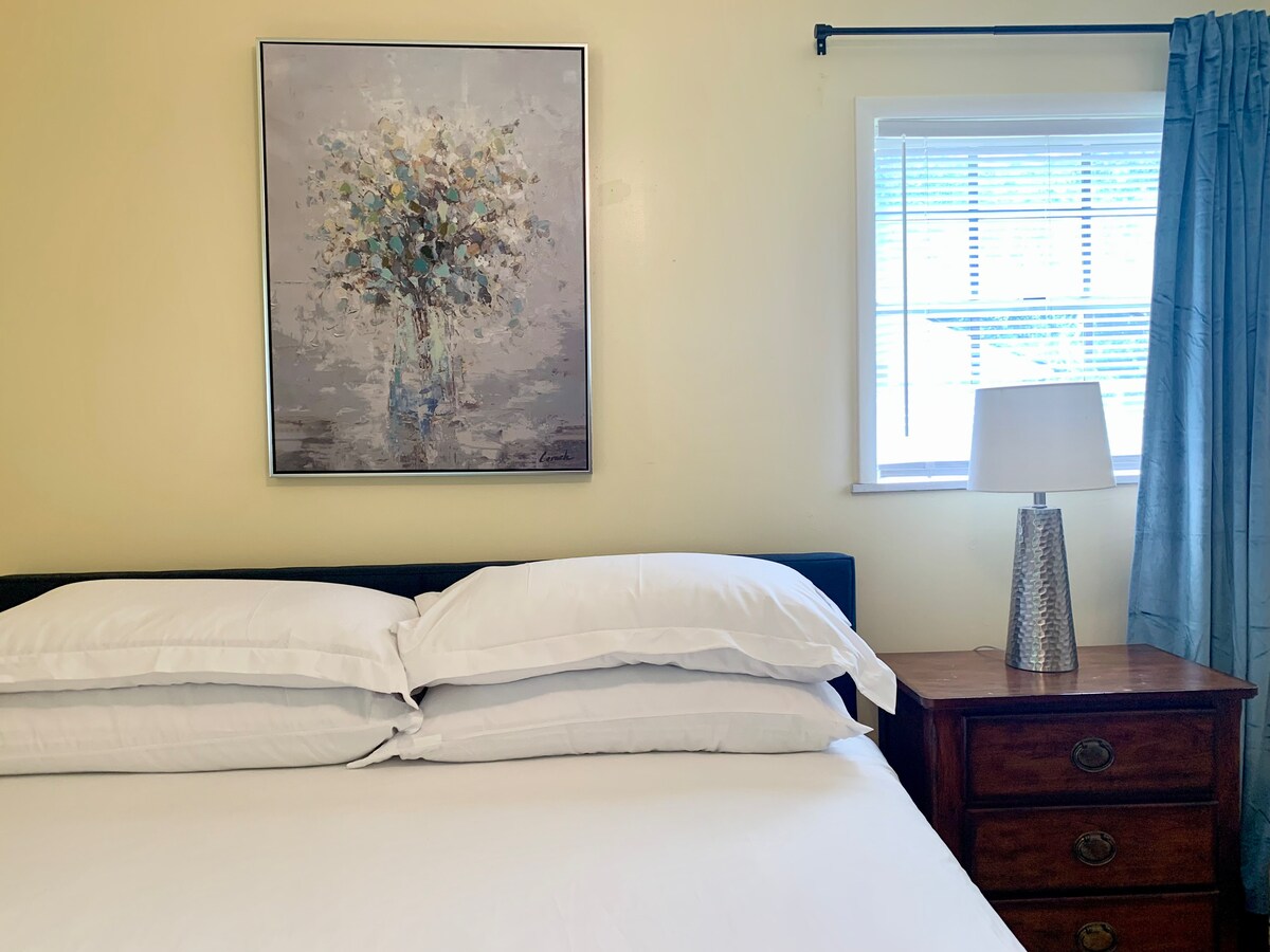 This is a basement apartment in my personal home with its own separate entrance, bathroom, and kitchen. Parking is on the street in front of the house and there’s a concrete walkway that takes you down to the entrance. It’s a studio style apartment with your own thermostat, a king bed, ceiling fans, over 500 sqft, and a fenced backyard for your pup if you bring one. Minutes from Clemson University, T ED Garrison Arena, I85, and 40 min from downtown Greenville. Hulu Live is provided on the tv