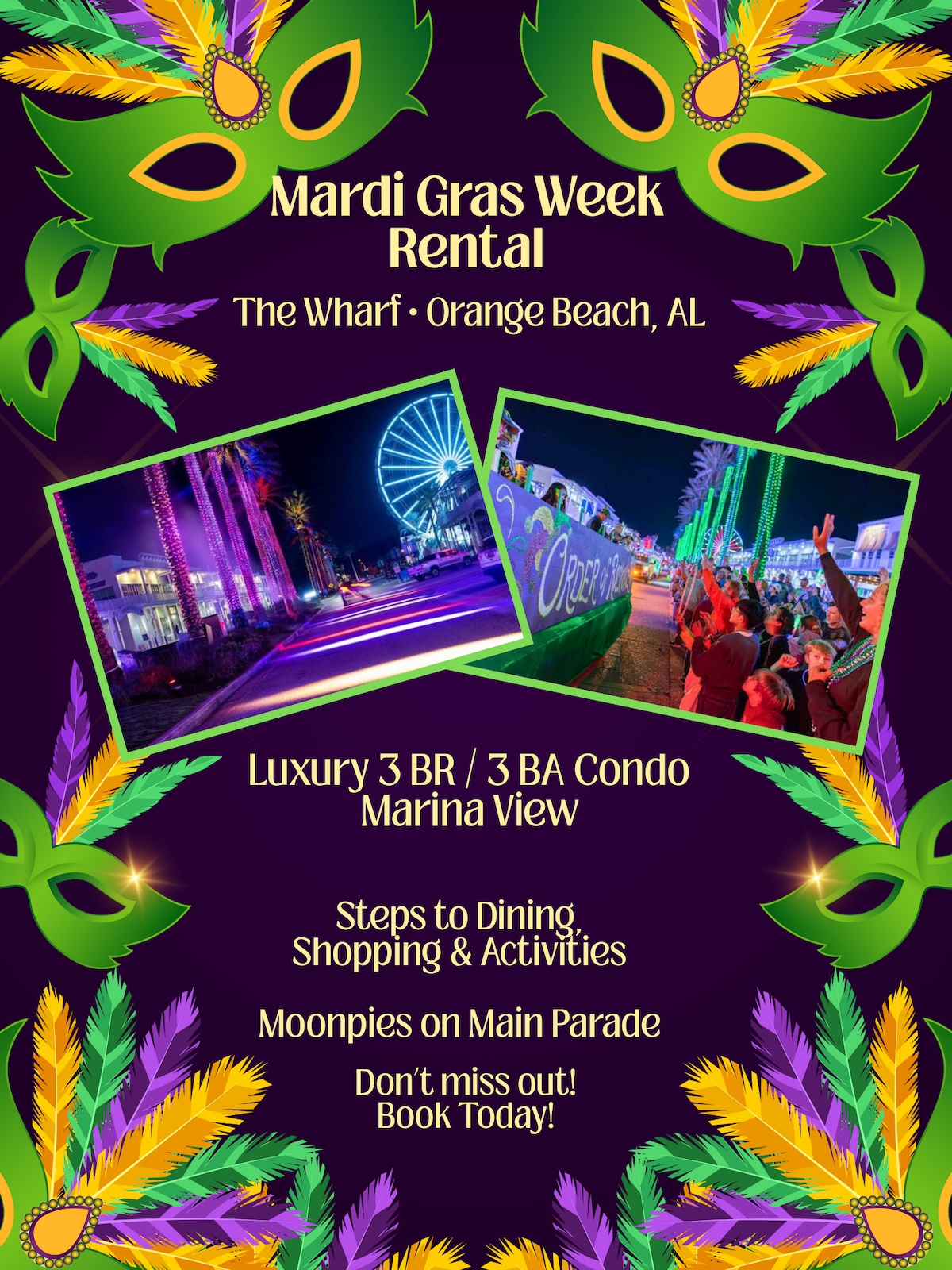 ¡Disfruta de tu estancia con todo incluido en el Wharf! ¡Desde la hermosa vista del séptimo piso con vistas al puerto deportivo hasta todo lo que puedas desear en la planta baja! Restaurantes, tiendas, cine, conciertos, bares/entretenimiento, mini tienda de comestibles... ¡lo que quieras! ¡No olvidemos el Oasis! ¡Piscina de olas, río lento, piscina, toboganes para niños, voleibol de playa y restaurante! Con todo ubicado en el centro de la planta baja, ¡ni siquiera tendrás que salir! ¡A solo 8 minutos en coche de la playa pública más cercana!
