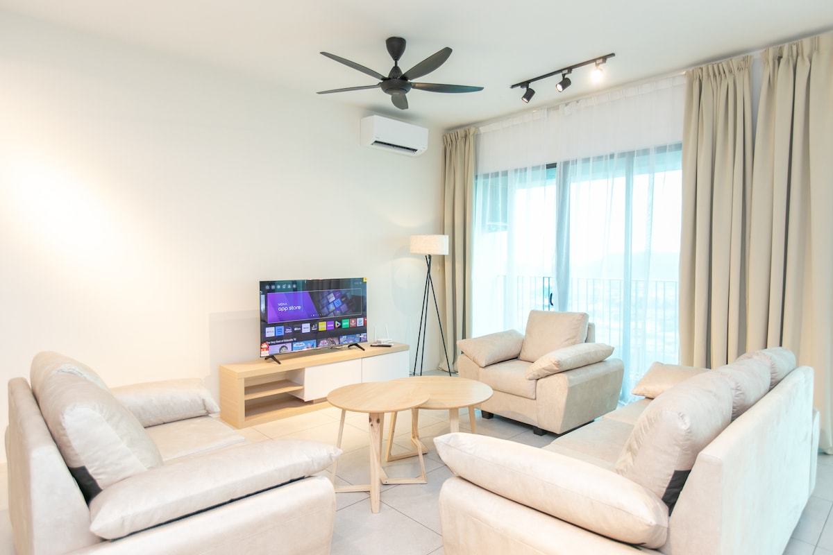 Urban Suites by Comfy Homestay SUPERANFITRIÓN de★ 5 estrellas ★ 3 dormitorios con 2 inodoros ★ 1 estacionamiento privado en el nivel 10 Wifi de alta velocidad de★ 100 Mbps ★ Totalmente climatizada. A ★ 2 minutos en auto del puente Penang. A ★ 2 minutos en auto de Karpal Singh Drive (Starbucks, Coffee Bean, McD, Family Mart, Karpal Singh Drive Seaview Promenade) A ★ 5 minutos en auto del centro comercial Queensbay ★ De 8 a 10 minutos en coche (menos de 5 km) de Chew Jetty, arte urbano y casco antiguo patrimonio de la UNESCO. A ★ 25 minutos en auto del aeropuerto.