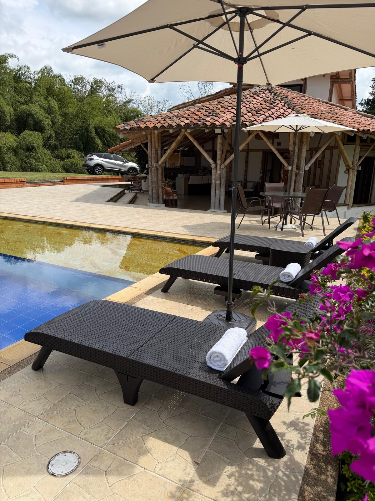 Casa Campestre en Pereira-Cerritos, Fácil Acceso. Disfrutarás de días soleados, descanso, conexión con la Naturaleza, y hermosos atardeceres. Con vista a un espectacular guadual. Ubicada a 15 minutos del Aeropuerto Matecaña, con excelente ubicación a sitios de interés del Eje Cafetero; a 5 minutos de los mejores MALLS de comidas de la ciudad, de supermercados. Lugar perfecto para disfrutar en familia. Con Jacuzzi climatizado, Zona BBQ, Horno de leña para pizza. Zona de fogata. Pet Friendly.