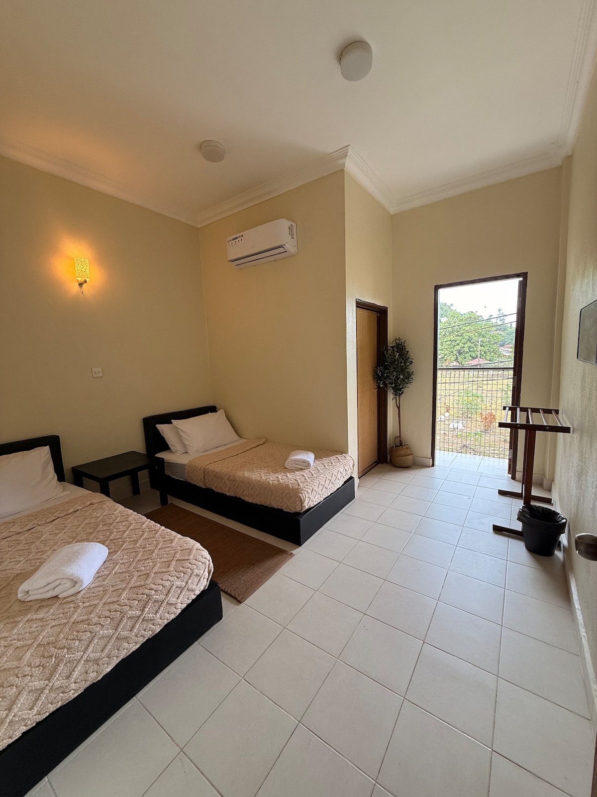 ¿Buscas una escapada a una isla tranquila? Nuestra cómoda suite en Sharila Island Resort cuenta con 2 camas tamaño queen, un baño privado y un espacio acogedor para relajarse después de un día de aventuras en la isla. A solo un corto paseo de la playa, perfecto para parejas o familias pequeñas que quieran relajarse junto al mar.