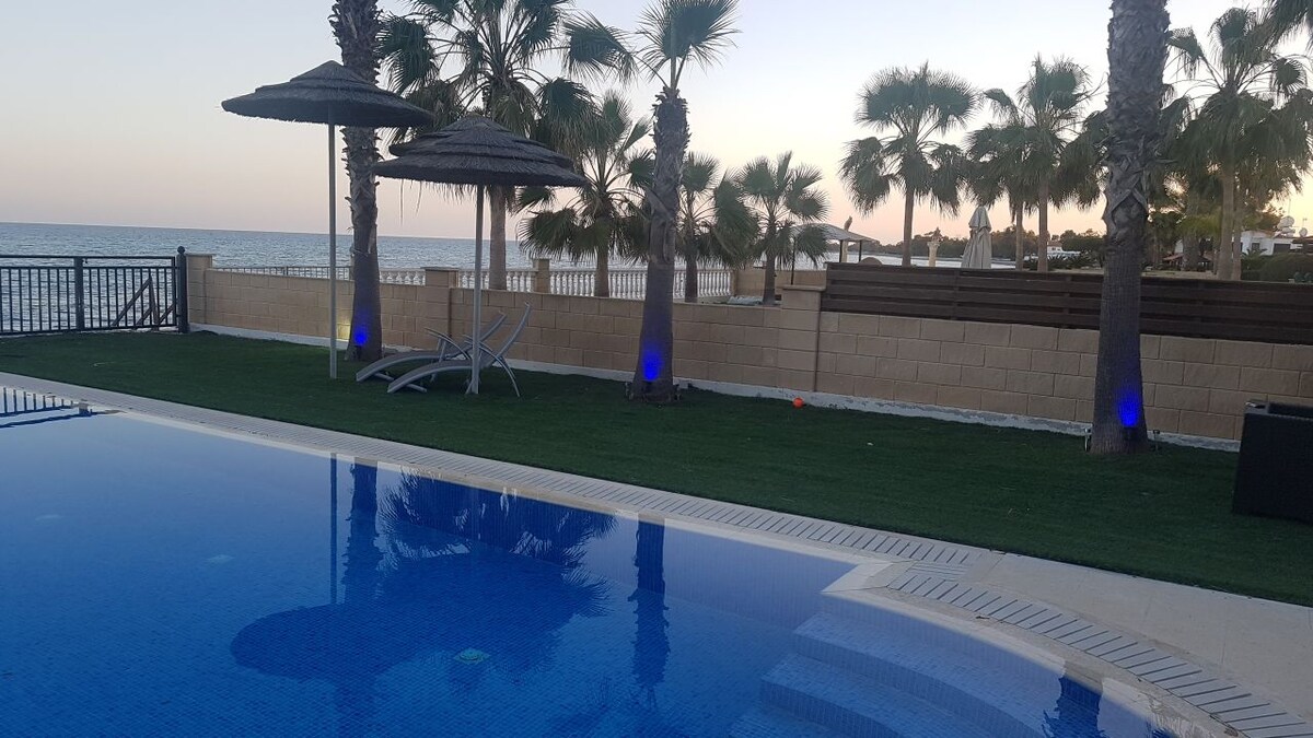 Beautiful guesthouse, studio in a security complex on the beach in Pervolia area. Sleeps 2 persons on a double bed .Beautiful large pool and garden shared only with my house, i live next door. Complex with tennis court . Clean and homely. 20 meters from sandy beach. Local tourists attractions , Faros Lighthouse , Close to traditional Greek village of Pervolia, 10 minutes drive to Larnaca city, close to Mackenzie beach and 10 minutes drive from Larnaca Airport .