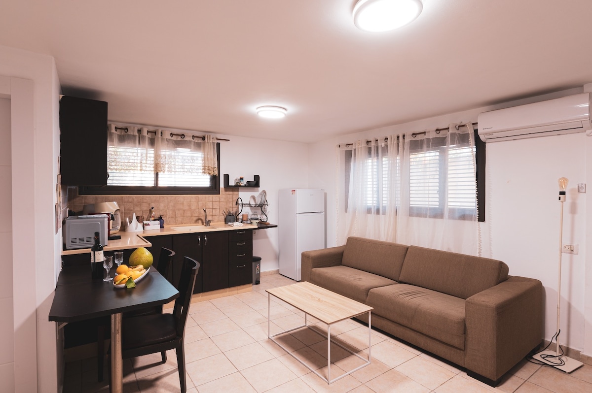 Un acogedor apartamento estudio. Cama tamaño queen más sofá que puede ser una cama doble y una bonita zona de estar. Totalmente equipado, amueblado y acogedor, incluyendo Netflix TV, WiFi, como casa en un edificio de lujo ubicado en el tranquilo centro de Ra'anana. Es pequeño, de 35 metros cuadrados, pero hermoso y cuenta con todo lo necesario.