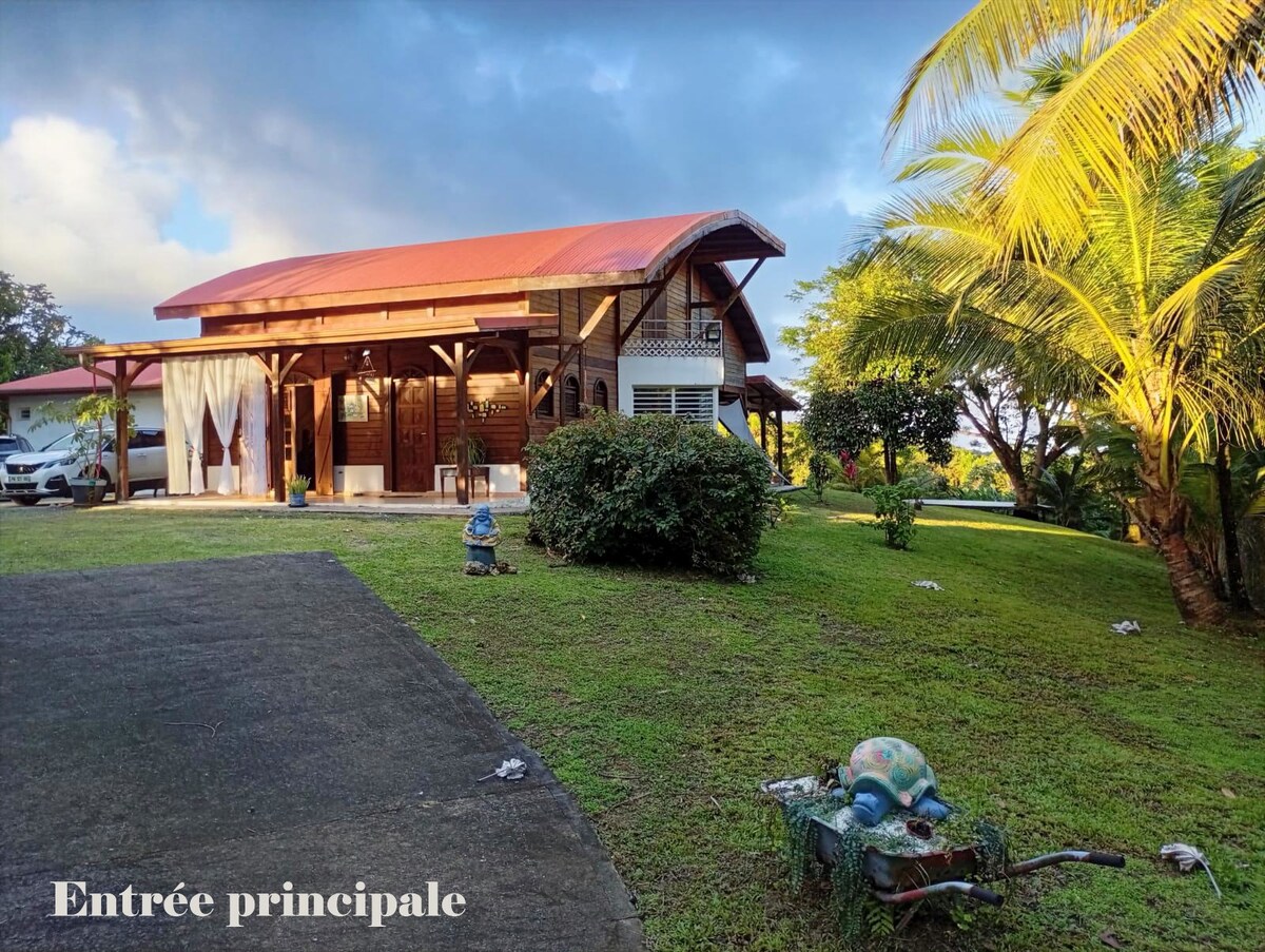 Vous souhaitez profiter d'un bel espace dans un cadre tropical, en plein coeur de la Guadeloupe ? Installez-vous dans la Villa Tarare, une maison de type créole en pleine nature ! Cette villa vous offre tout ce qu'il vous faut pour passer un séjour inoubliable et serein : grand espace de vie, cuisine totalement équipée, trois grandes chambres dont une de plain-pied, double terrasse et piscine ! Le tout au pied des montagnes, à moins de 10mn de toutes les commodités !