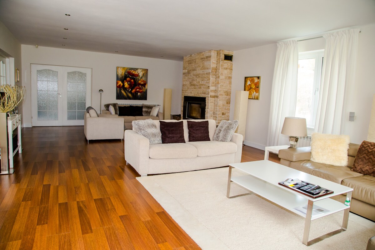 Trae a toda la familia a este gran lugar con mucho espacio para divertirse. Si quieres celebrar tu cumpleaños con tus amigos o simplemente pasar un tiempo de calidad con tu familia, este es el lugar adecuado. Amplia casa de campo de 5 dormitorios, con vistas a la montaña y sin vecinos para molestar o ser molestados, equipada con una gran sala de estar con TV de pantalla plana, una terraza con una enorme mesa de comedor. La cocina está totalmente equipada con nevera, cocina, cafetera, tostadora, platos y barbacoa.