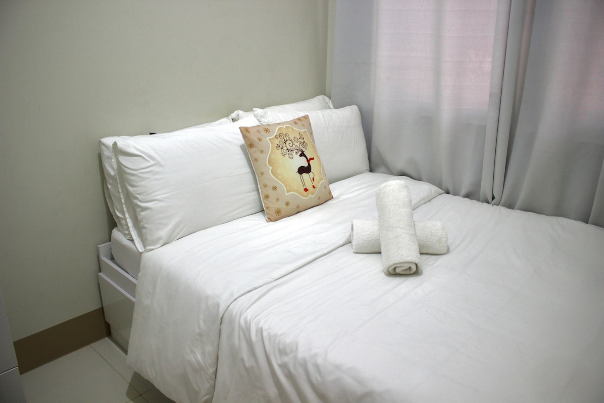 Nuestro alojamiento es una unidad de 1 dormitorio totalmente amueblada ubicada en Sundance Residences, justo en el centro de la ciudad de Cebú. Este lugar cálido y acogedor da la bienvenida y hace que la estancia de los huéspedes sea inolvidable y cómoda. Nuestro alojamiento está amueblado con los elementos básicos para una estancia agradable, como calentador de agua de ducha, nevera, cocina de inducción y hervidor de agua, utensilios para comer y cocinar, arrocera, microondas y dispensador de agua con 1 galón de recarga gratuita. También ofrecemos wifi ilimitado con 85 canales de televisión Cignal.