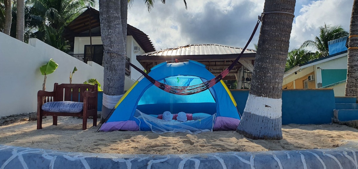 Nuestra tienda de campaña se encuentra en la colina en la parte trasera de las habitaciones de la cabaña de Dahilig Resort. Estamos cerca de la carretera principal a Sabang o PG Town, una ubicación ideal para explorar Puerto Galera. También estamos a 5 minutos en auto o a 12-15 minutos a pie de una playa cercana. Tenemos acceso privado al océano para ir de isla en isla y actividades acuáticas.