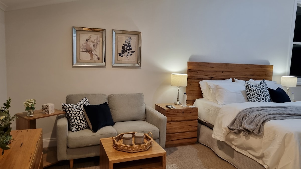 Escápate al estudio «Oak Leaves», ubicado bajo un dosel de robles en el lado más tranquilo de la península de Mornington. Somos una familia de surfistas que queremos compartir nuestra historia contigo. La cómoda cama tamaño queen, la sala de estar con TV inteligente y los altavoces Bluetooth proporcionan un ambiente relajante. Prepara comidas en la cocina americana y en la parrilla Webber. Aprovecha el pozo de fuego privado y recoge productos frescos del huerto compartido. Con tu propio aparcamiento y entrada, esta es la base perfecta para explorar la zona.