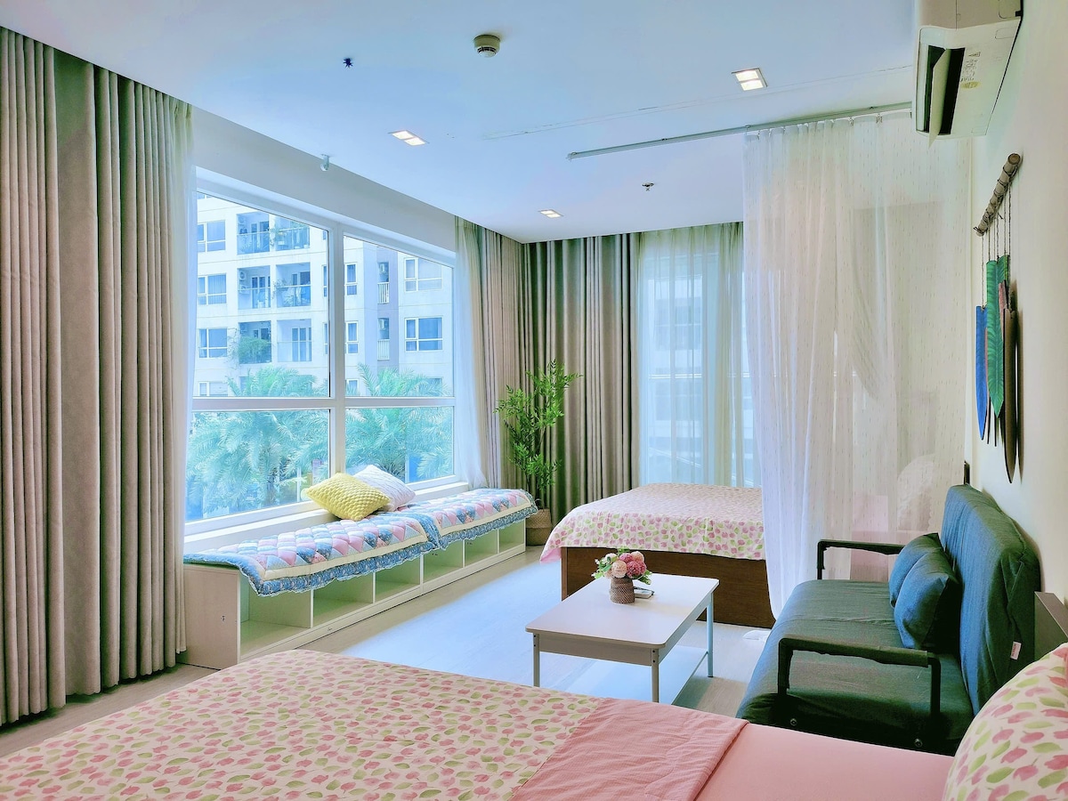 El espacio para alquilar se puede utilizar para la estancia, el trabajo y las reuniones. La habitación cuenta con instalaciones completas para trabajar y hacer turismo, como wifi, sala de reuniones, máquina de impresión, TIVI y proyector. Un sofá cama inteligente permite a los huéspedes alojar durante la noche con tres personas o permitir que los huéspedes tengan una habitación de doble uso que se puede utilizar para el dormitorio cuando sea necesario, pero que se utiliza como oficina para trabajar en otros momentos. Sky Center tiene muchos supermercados, restaurantes, piscina, gimnasio, lavado, servicios de estacionamiento para los huéspedes.