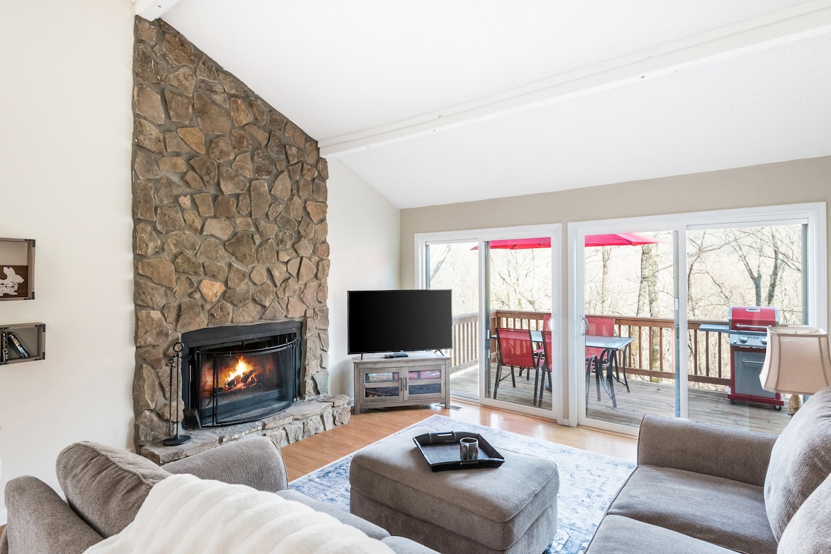 Encuentra comodidad y relajación en este acogedor apartamento de montaña de 2 dormitorios y 2 baños. Ubicado en las montañas Apalaches, Bearfoot Retreat tiene todas las comodidades que puedas desear para que te sientas como en casa lejos de casa. Con chimenea de leña, vistas al lago y al deslizamiento de rocas, con un bar al aire libre con vistas al bosque, este es el refugio que has estado buscando, con todas las comodidades modernas; una cafetería, TV inteligente de 70 pulgadas, hogar inteligente y mucho más.