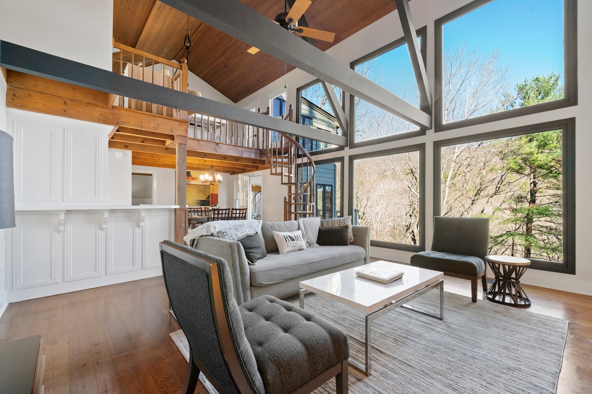 «Nestled Away» es un alojamiento sereno y tranquilo, en la sección superior de las copas de los árboles de Big Canoe. ¡Contamos con fantásticas vistas al lago! Recientemente renovada, nuestra casa es perfecta para una escapada en pareja o unas vacaciones en familia. 2 dormitorios/2 baños con cocina totalmente equipada y terraza con vistas al lago Petit. Cubierta amueblada con comedor, 4 cómodas sillas Adirondack y mesa de fuego de propano. La casa es luminosa y brillante con ventanas circulares del suelo al techo que permiten la entrada de luz natural. Ambos dormitorios tienen camas tamaño queen.