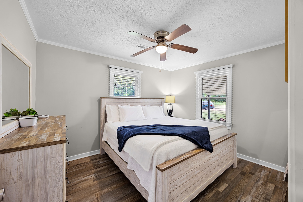 Bienvenido a este tranquilo refugio a pocos minutos del lago Pickwick y del parque nacional Shiloh. Las familias, los equipos y los viajeros de negocios disfrutan de sábanas de lujo, colchones y almohadas protegidos contra alergias, toallas mullidas, lavadora/secadora y una barra de café totalmente surtida. Wifi fiable y un televisor ROKU garantizan productividad y entretenimiento. Los niños juegan al aire libre mientras los adultos se relajan en los asientos del patio de fabricación Amish. La atención al detalle, la comodidad y el compromiso con la excelencia definen esta acogedora escapada.