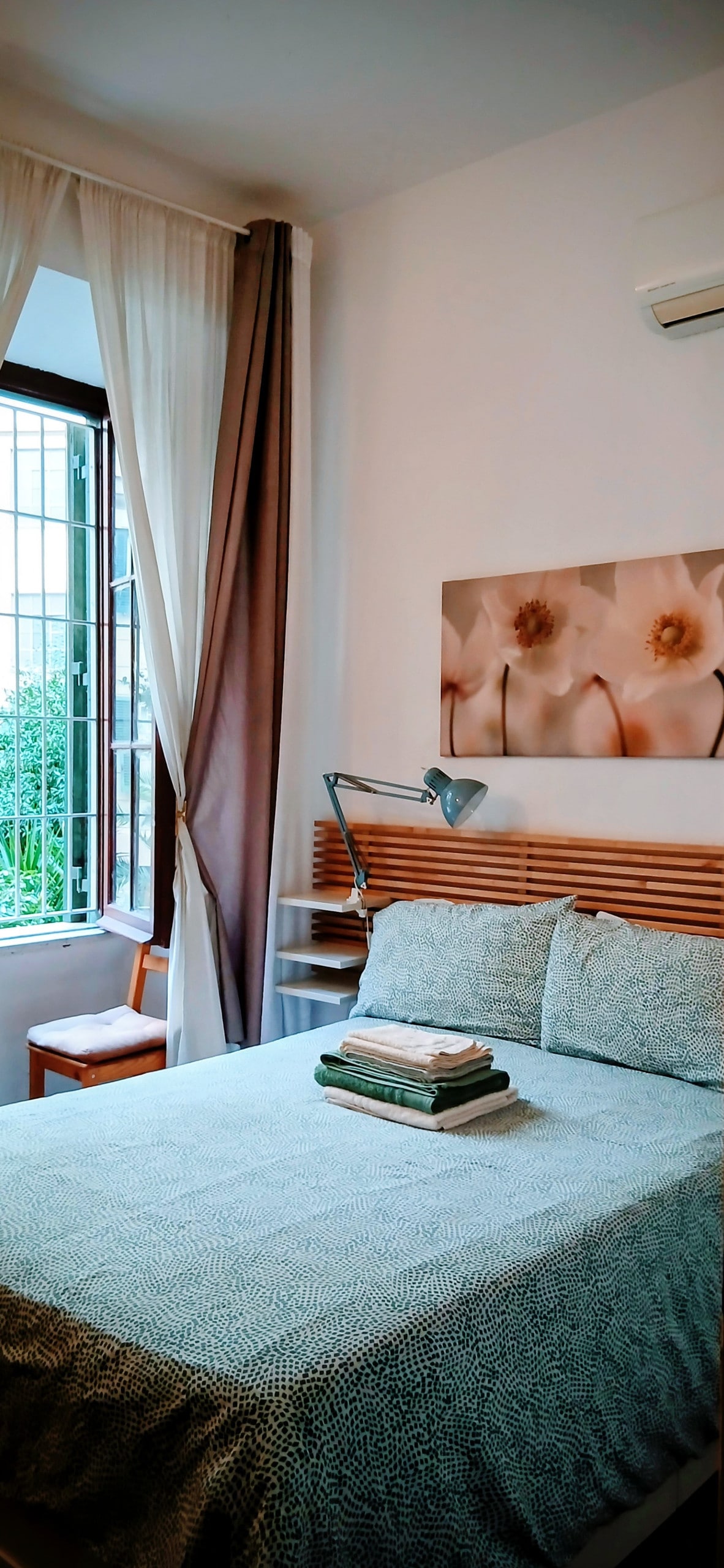 Este loft unico en su especie, rústico pero elegante, está lleno de detalles en madera, metal y piedra, todo hecho a mano por Giulio, su dueño. La fabulosa terraza te dejará sin aliento. ¿Qué tal un café en pantuflas mientras contemplas el Coliseo o ves la puesta de sol tras la sombra del Vaticano desde la bañera de la cabaña? Ubicado a minutos de la estación Termini, pero aún así, un hogar tranquilo. El acceso al apartamento se realiza por escaleras. ¡El desayuno corre por nuestra cuenta!