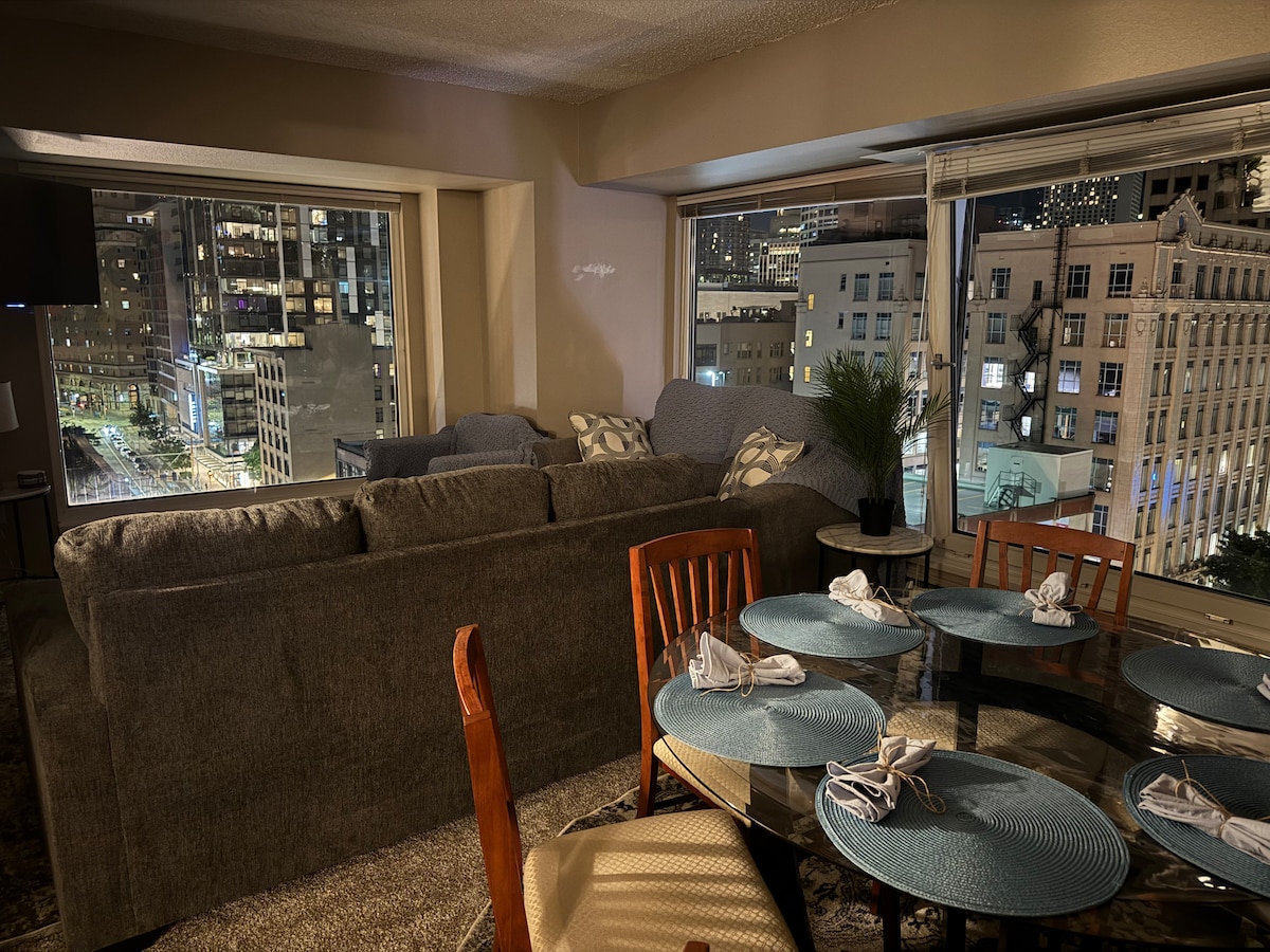 Bienvenido a Belltown, en el centro de Seattle, para hacer turismo a pie de restaurantes y lugares famosos: Pike Place Market, Space Needle, centros comerciales, centro de convenciones, etc. Hay restaurantes gourmet y una panadería en el edificio. Esta suite ofrece comodidad para familias y servicios increíbles en el edificio: jacuzzi, piscina y sauna seca. Además, hay aparcamiento gratuito.