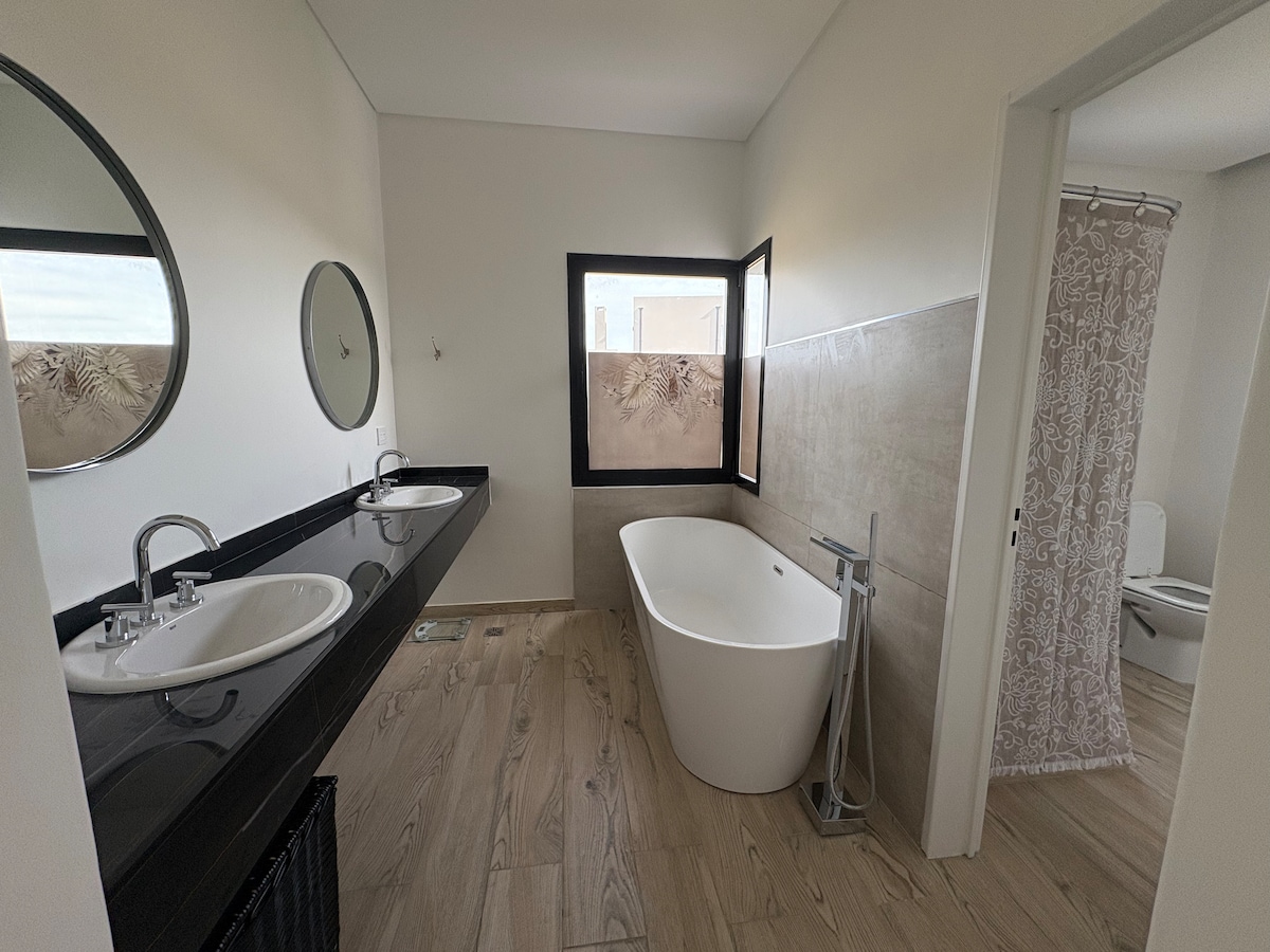 Casa en barrio privado inaugurada en marzo de 2022, diseño único mid-century modern. Amplia, funcional y acogedora. Aire frío/calor en todos los ambientes. Calefacción por losa radiante. Gran parrilla, anafe y horno eléctricos, artefactos de 1ra, aberturas doble vidrio y galería con los mejores atardeceres por su orientación Noroeste. Jardin con salida a amplia laguna. Cama California king en suite. Colchones de 1ra. Wifi alta velocidad. ::No se permiten eventos, mascotas o invitados extra