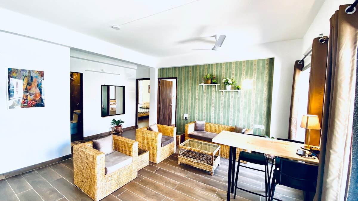 ¿Todo listo para disfrutar del sol y dejar que tus preocupaciones se desvanezcan? Nuestra encantadora casa de vacaciones está a tiro de piedra de la playa de Calangute - Baga. Tanto si te apetece tomar el sol, nadar o descansar en una cabaña de playa, este es el lugar perfecto para unas vacaciones relajantes. Al entrar en tu apartamento, sentirás el amor y el cuidado que se han dedicado a crear este acogedor espacio. Y después de un día explorando Goa, el balcón con vistas al jardín tropical es un lugar encantador para recargar energías.