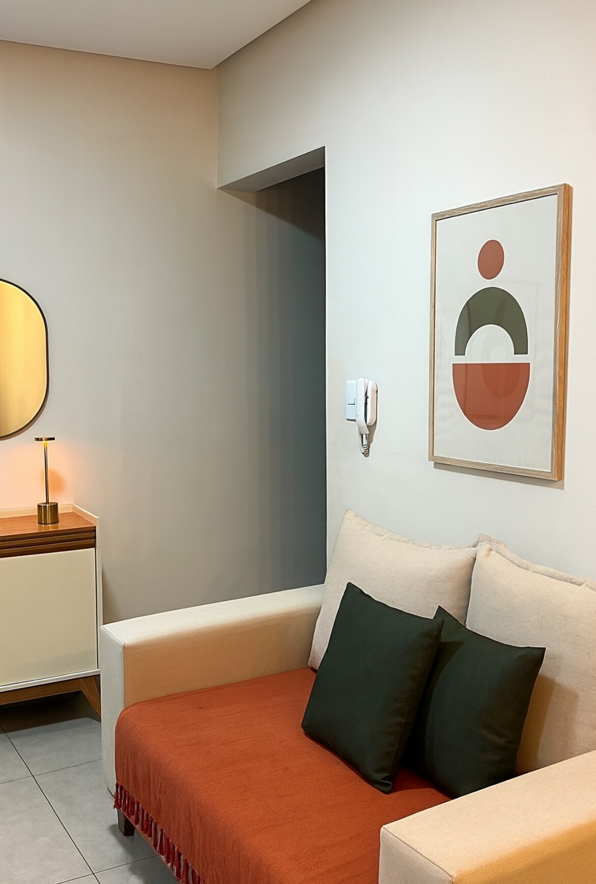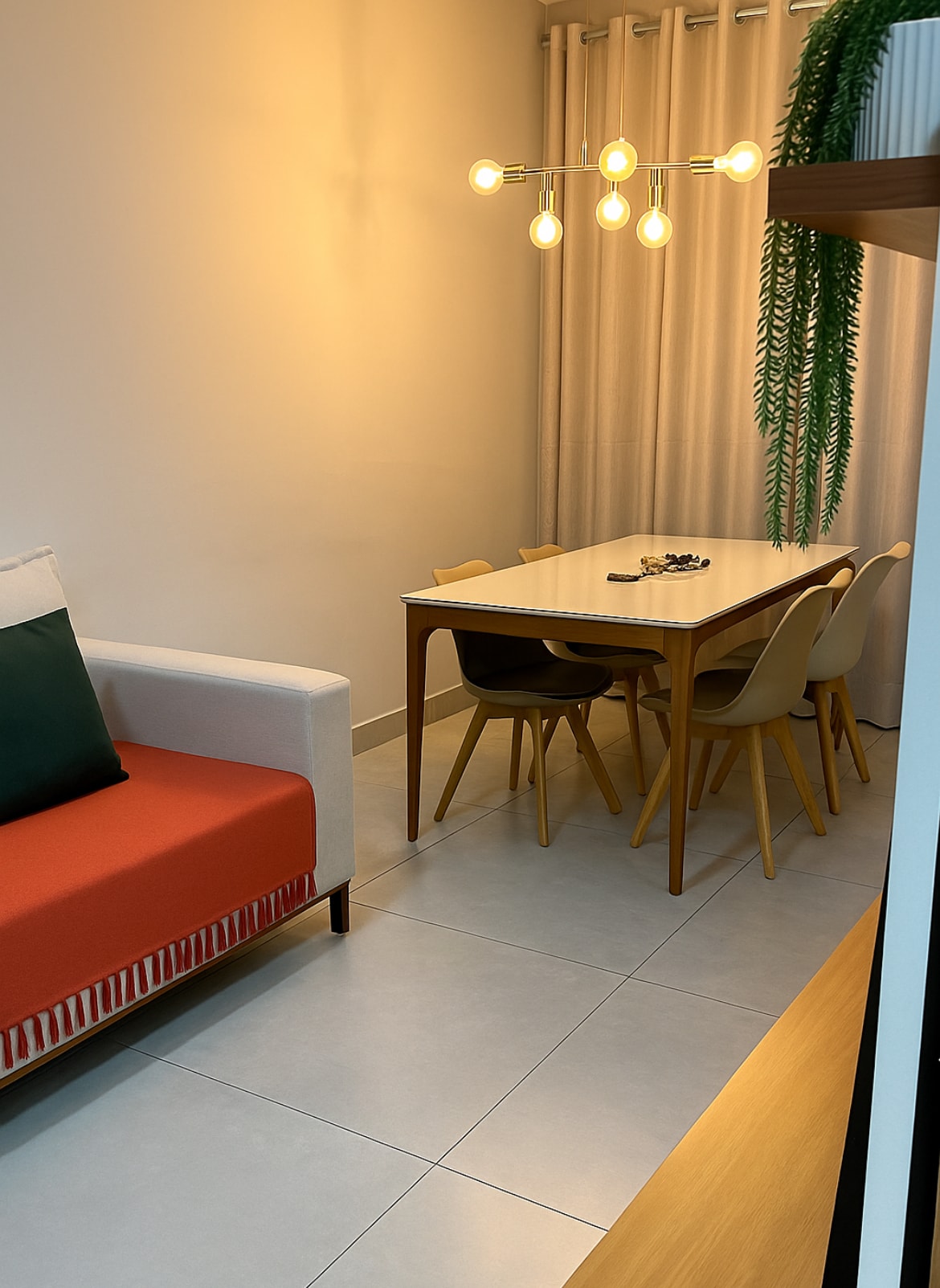 Nosso apartamento foi pensado para oferecer o conforto de um hotel, com as comodidades de uma casa. Ele possui um quarto, sala e cozinha conjugados. No quarto há uma cama queen, com roupas de cama de algodão 400 fios e armário. Já a cozinha conta com todos os equipamentos necessários para o preparo das refeições. Pensamos cuidadosamente em cada detalhe para tornar a sua hospedagem o mais agradável possível, incluindo móveis confortáveis, TV 50'' com diversas opções de streaming.