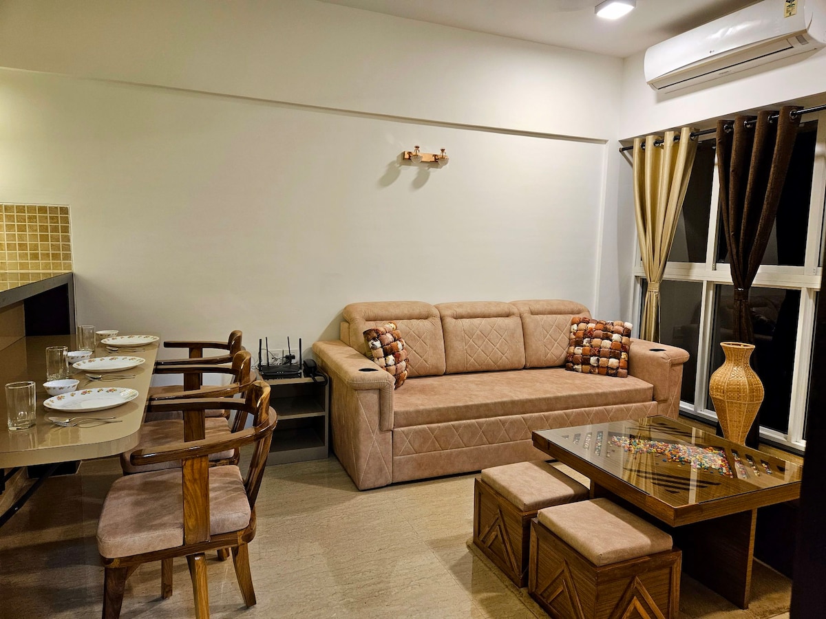 Relájate en este tranquilo refugio de 1BHK con un acogedor balcón con vistas al exuberante campo de golf. Disfruta de un televisor LED de 65", wifi rápido y unos interiores relajantes y artísticos que combinan la comodidad con un diseño lleno de alma. Tanto si sois una pareja, viajas en solitario, trabajas a distancia o sois una familia pequeña, este espacio cuidadosamente seleccionado ofrece todo lo que necesitáis para relajaros, trabajar o explorar. Ubicado a solo 30 minutos de Pune, es perfecto para escapadas de fin de semana, estancias conscientes y escapadas tranquilas más largas.