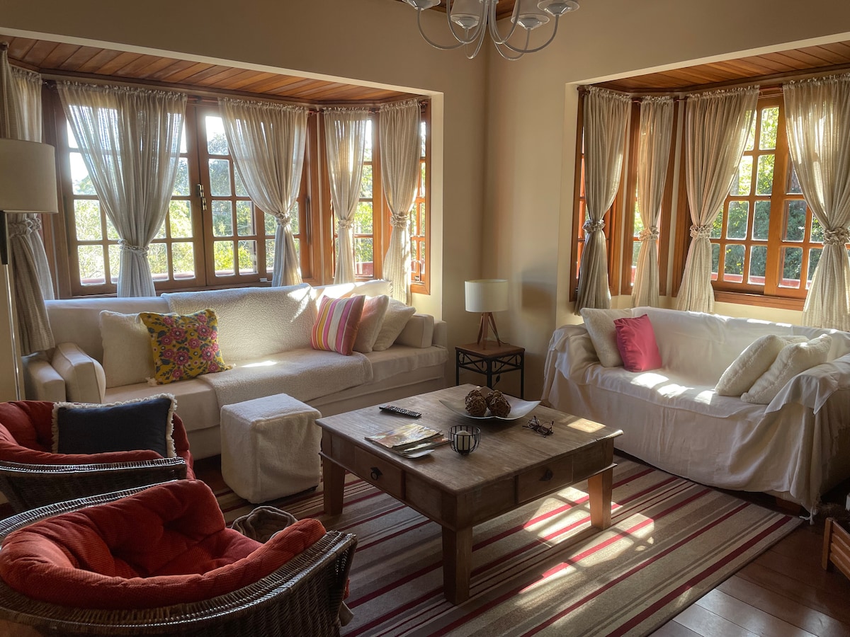 A casa foi totalmente reformada, agora com duas suítes e um quarto com banheiro privativo. Ganhou pisos novos, forro de gesso, iluminação moderna, novos móveis e decoração renovada. Tudo isso realça ainda mais a vista exuberante que o imóvel oferece! A Casa do Curupira está localizada em um condominio particular, a propriedade oferece conforto, privacidade, silêncio e ar puro. A casa acomoda confortavelmente até 6 pessoas com Wifi e internet ótima! No sitio temos o Chalé Mirante da Coruja