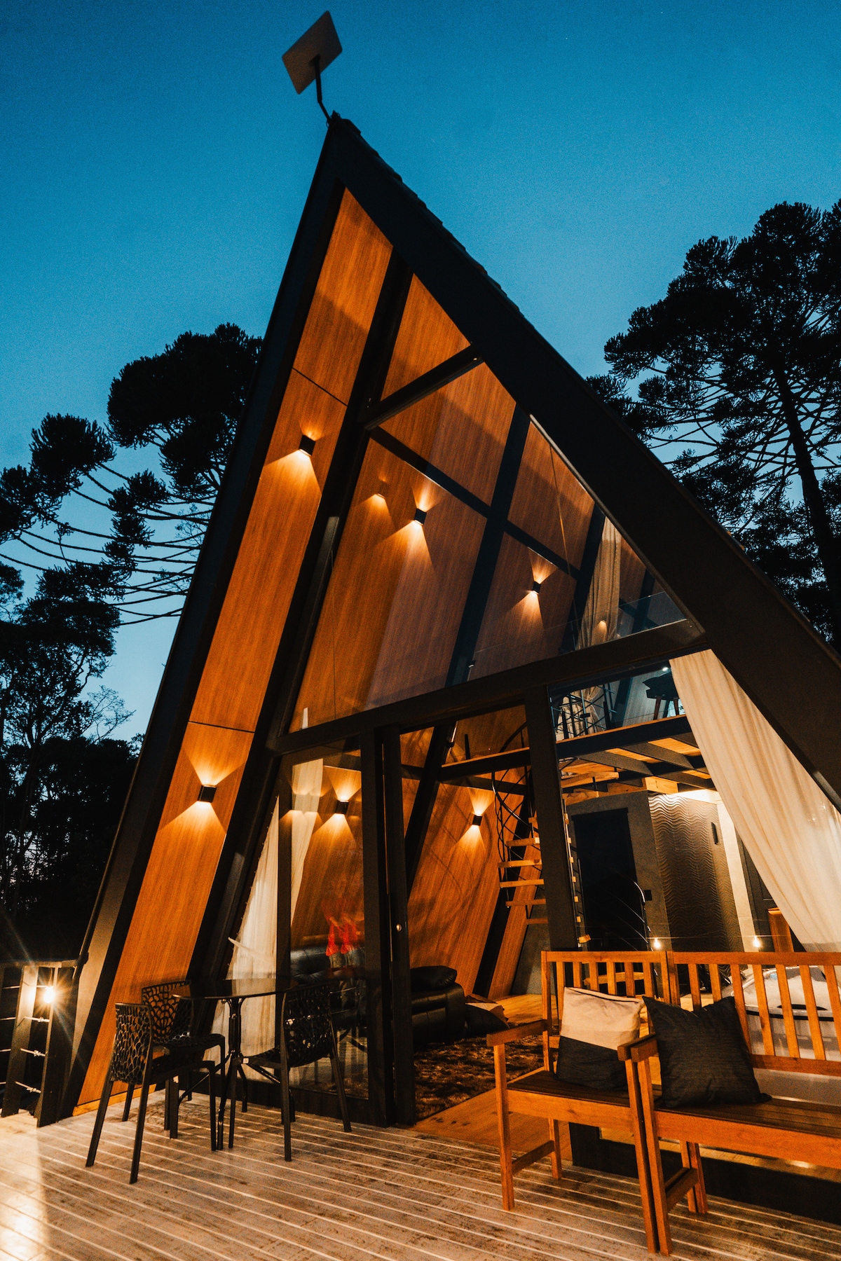 Descubre «Mirante da Coruja», un tranquilo refugio entre las copas de los árboles, construido con madera de pino de Riga reciclada. Este chalet con paredes de cristal ofrece privacidad, comodidad y vistas impresionantes. Equipado con chimenea, terraza privada y una amplia terraza, se convierte en el escenario perfecto para celebraciones especiales y momentos de relax, combinando la autenticidad del arte local con la magnífica naturaleza circundante.