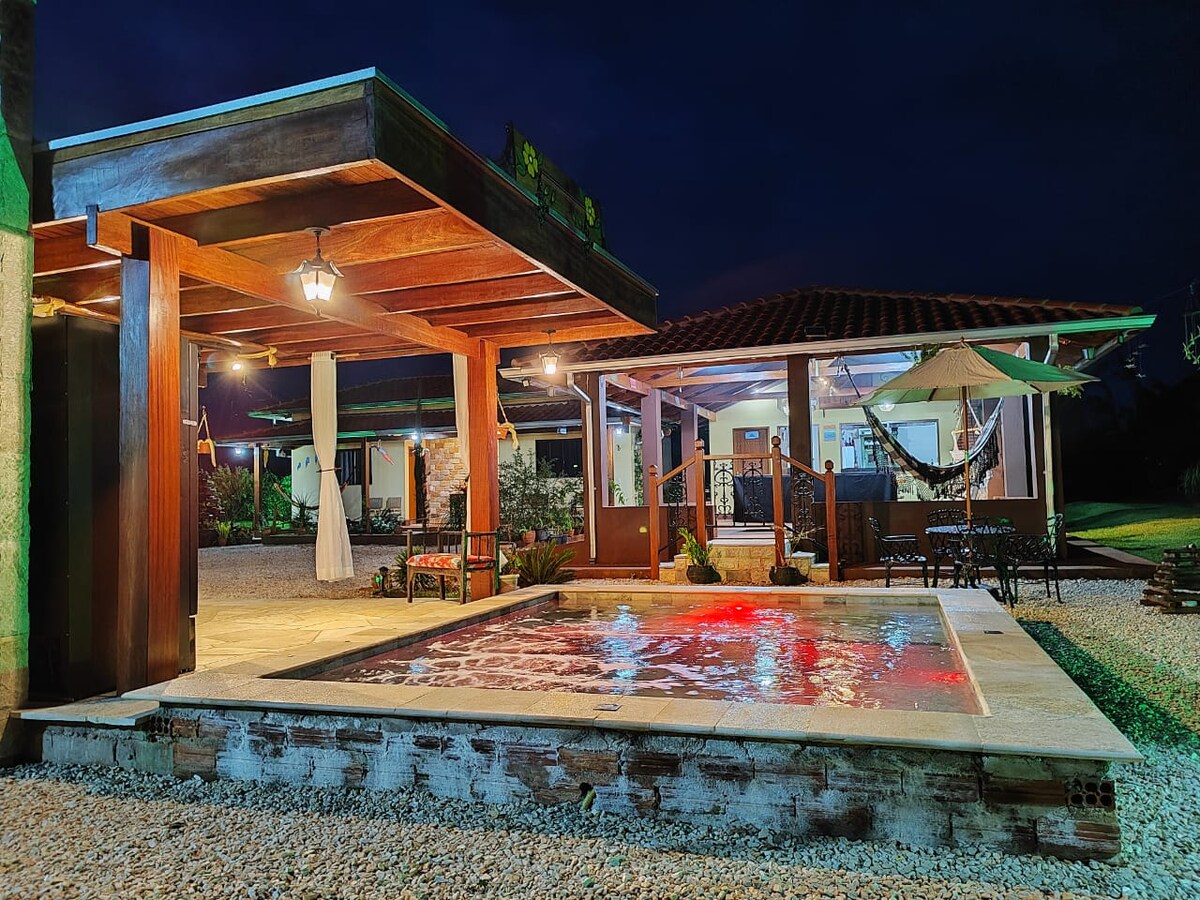 En el centro histórico de Pirenópolis, Casa Leve reúne la elegancia colonial y la comodidad contemporánea. Después de una adaptación que preservó su esencia, ofrece una experiencia auténtica y exclusiva. La casa está completa, con suites cómodas, acabados naturales, muebles por derechos de autor y una zona al aire libre con vistas encantadoras. La piscina con aire acondicionado, con cascada y bañera de hidromasaje, es la escapada perfecta para relajarse, conectarse con la naturaleza y vivir una experiencia cultural única junto a las principales atracciones de Piri.