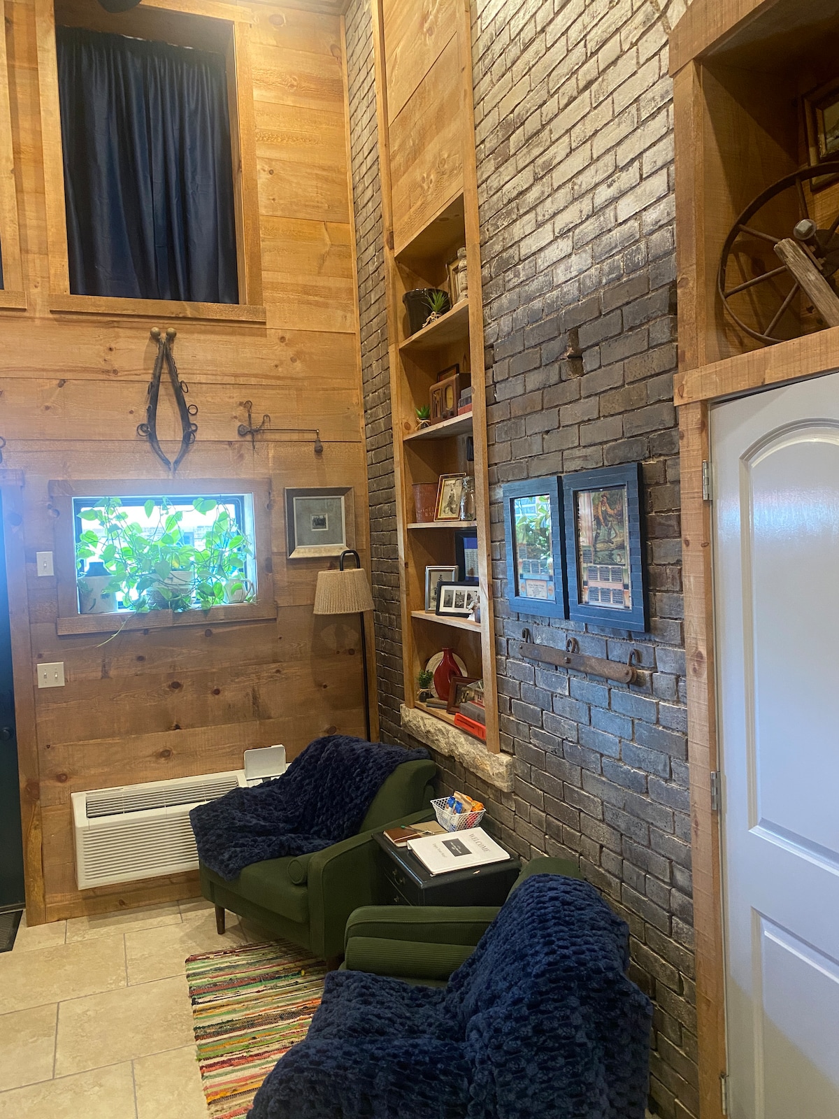 La cabaña de madera está en las colinas de Peoria, OK. En más de veinte acres de tierra. Las comodidades incluyen wifi, baño pequeño solo con ducha, TV, la distribución de las camas es una cama tamaño queen, un sofá cama y un colchón inflable bajo petición . Hay mucho espacio al aire libre para pasear, el terreno es rocoso y desigual, por lo que se recomiendan zapatos resistentes. Con un pequeño estanque cerca de ciervos, zorros, zorrillos, mapaches y coyotes deambulando por el bosque, así que presta atención a los animales pequeños y a los niños cuando estén al aire libre.