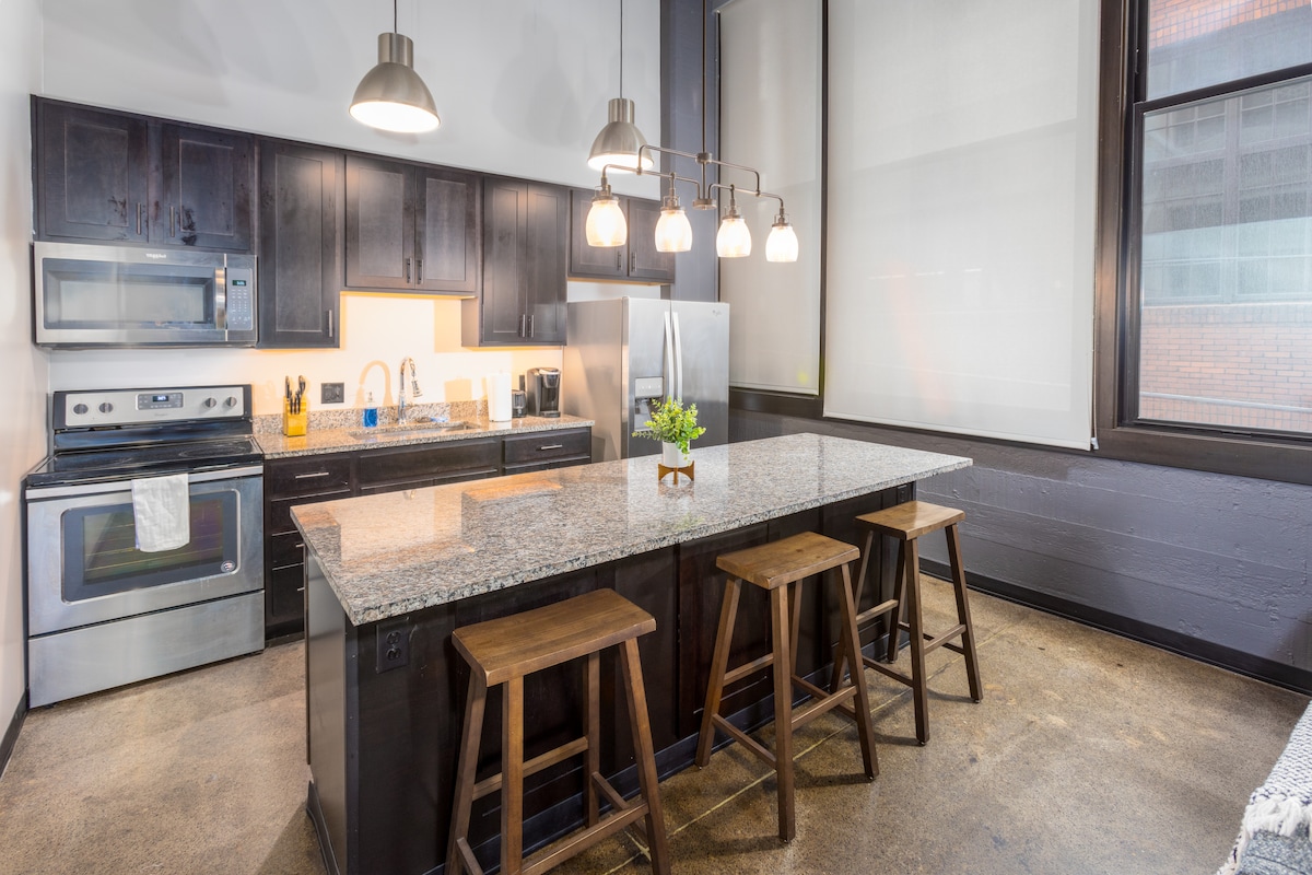 ¡Ven a relajarte en nuestra nueva ubicación! ¡Perfecto para trabajar y disfrutar! ¡Este almacén histórico se convirtió en unidades loft, pero aún conserva sus características arquitectónicas originales! Disfruta de la estética moderna industrial con techos de 15 pies de altura, paredes de ladrillo, plantas de hormigón originales y tragaluces del atrio que inundan el espacio con luz natural. Estas unidades vienen totalmente amuebladas y la mayoría tienen cocinas completas y todos sus accesorios necesarios para que usted simplemente deje caer su maleta y comience a relajarse. **AHORA MASCOTA