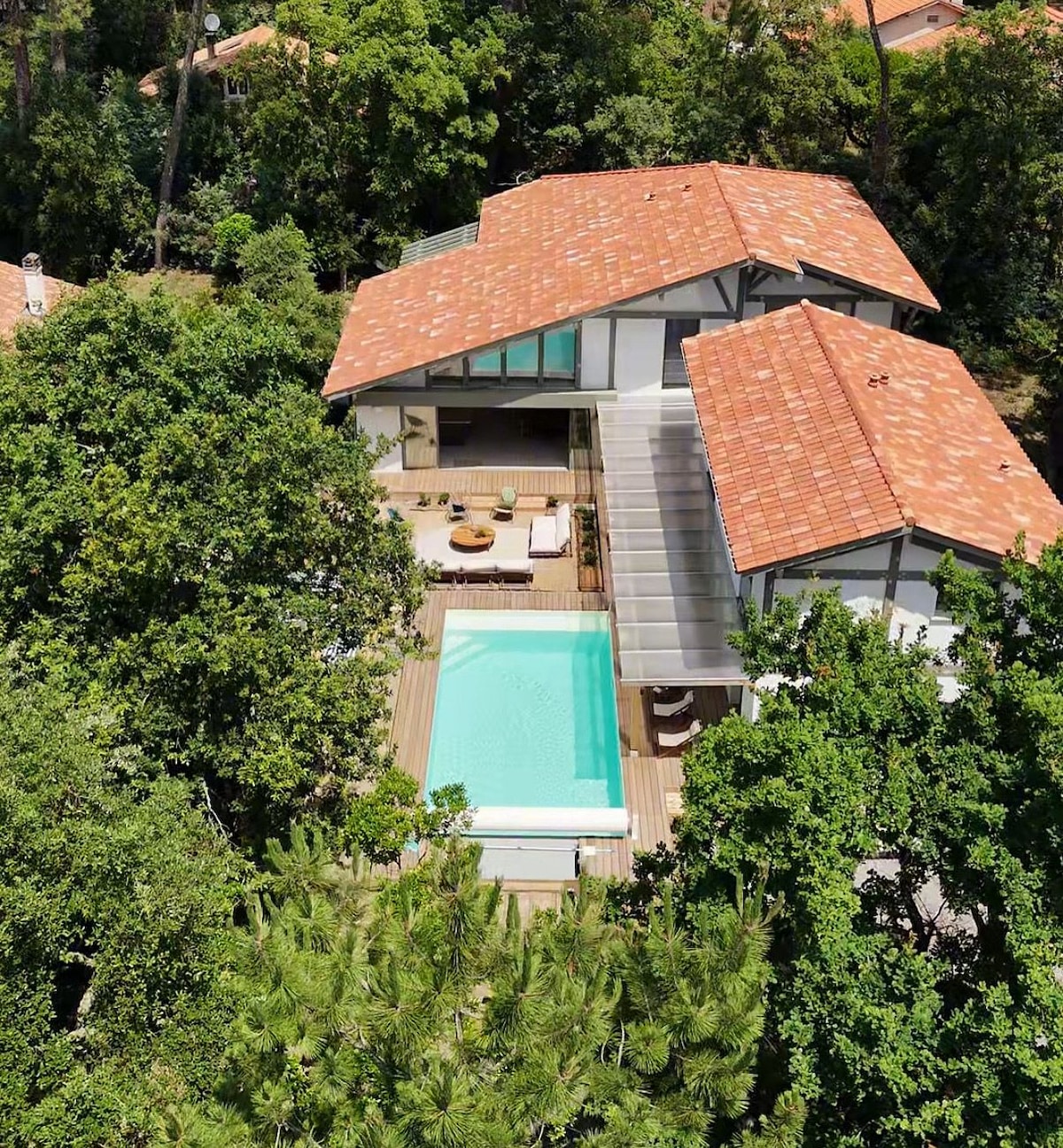 « KOLONAKI » Villa récente avec 200m2 de surface habitable, cuisine et salon 120 m2 ,vue sur la piscine chauffée sécurisée mi mai mi octobre,ses 5 chambres 4 salles de bain , son jacuzzi 5 pax chauffé toute l’année et son coin plancha. Douche et wc extérieur.parking de 3 places dans la propriété . Située à 800 m des spots de surf, calme , discrète, en lisière de la forêt landaise( départ piste vtt et cyclables Localisation : 5 min à vélo des plages , 10 min voiture golf Seignosse .