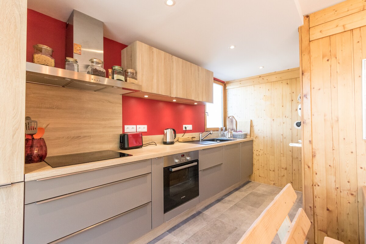Apartamento de 48 m2, acogedor y cálido con espíritu de chalet. Cuenta con todas las comodidades para que te sientas como en casa. Situado en pleno centro de la ciudad. La estación está muy cerca y el funicular para llegar a Les Arcs a 5 minutos a pie a través de la pasarela. Estacionamiento subterráneo gratuito a su llegada con capacidad para un automóvil o 4 motocicletas. ¡Residencia reciente con ascensor y placa de entrada para su seguridad! Llegada y salida a cualquier hora gracias a una caja de llaves discreta.