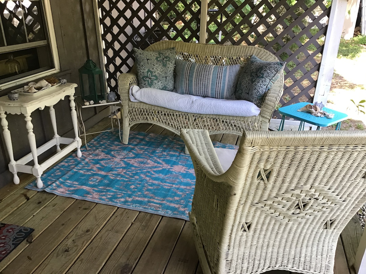 ¡Esta es la suite perfecta para tu próxima escapada a la playa! Aproximadamente a media milla del acceso a la playa más cercana. Nuestra acogedora suite con temática de playa está adosada a un espacio habitable independiente (similar a un dúplex o suite con entrada independiente) y tiene una entrada privada. ¡Está escondida en el bosque, justo enfrente del arroyo y lista para recibirte! Tuvimos daños por tormenta solo un mes después de comenzar nuestro Airbnb, ¡por lo que ha sido recientemente renovada dos veces!