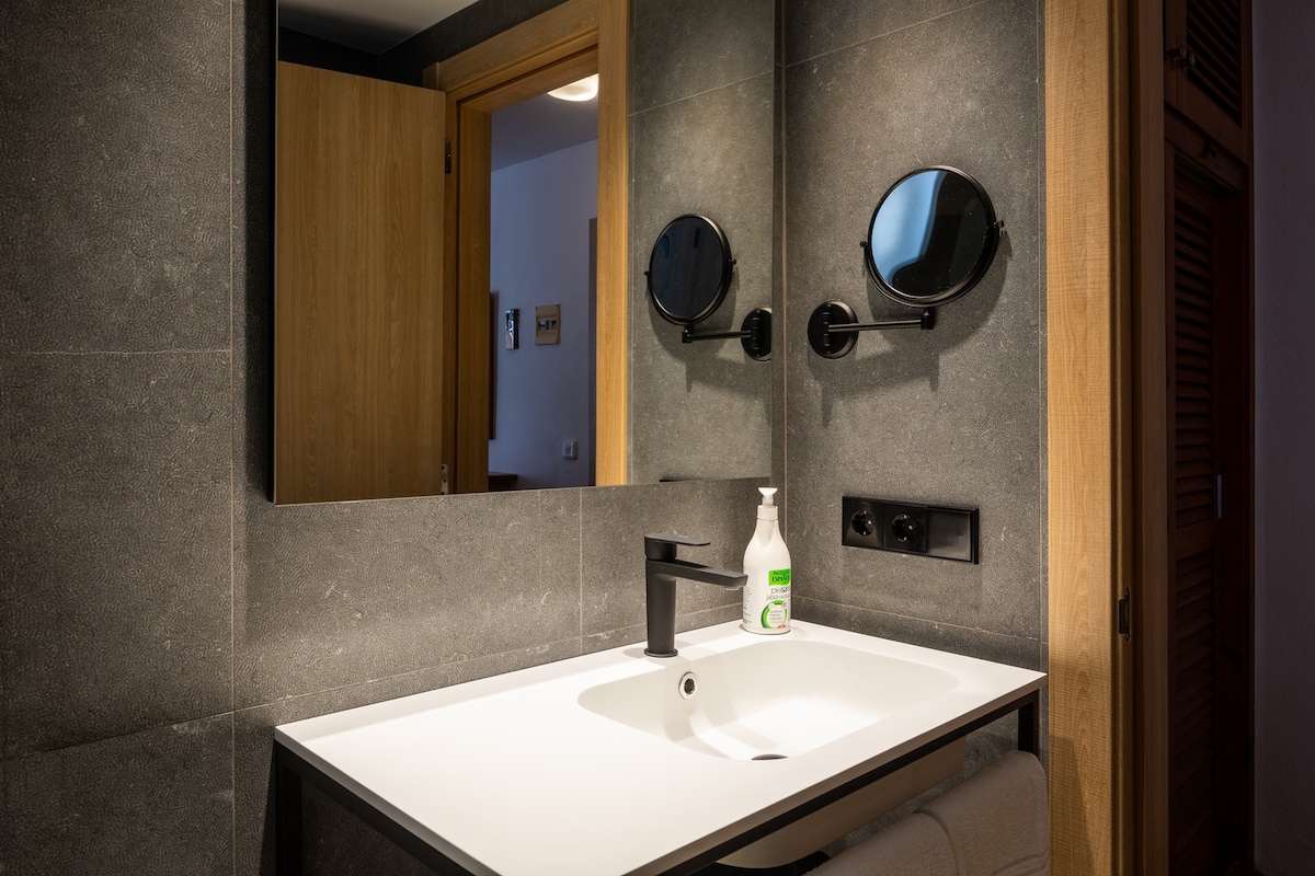 Gracias a la ubicación céntrica de este alojamiento, tú y los tuyos lo tendréis todo a mano, Bienvenidos a nuestro "Balcony Bliss", el estudio perfecto para 3 (¡niños gratis!). Dos camas individuales, sofá cama y mini cocina equipada para tus snacks de medianoche. Lo mejor: ¡balcón privado con vistas! Ideal para tus selfies matutinos o cócteles al atardecer. Baño privado con bañera para relajarte, caja fuerte para tus tesoros, secador para tu melena de estrella y jabón para brillar..