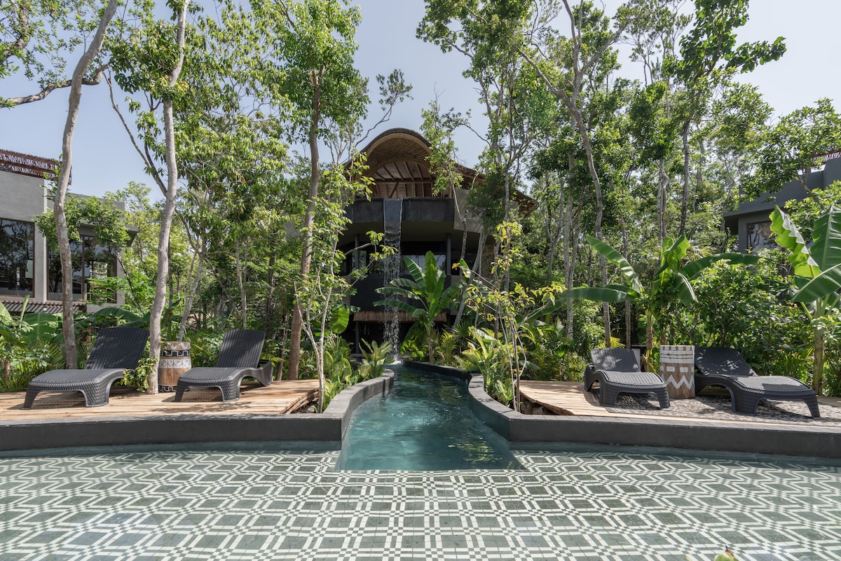 3 Min Walk to Centro Tulum 5 Min Drive to Tulum Beach 5 Min Drive to Tulum Ruins When you stay in this beautifully designed, modern studio located right near Centro Tulum, indoor and outdoor living blend together seamlessly. Modern with fiber WiFi, and open bedroom, a sleek modern kitchen, spacious living areas, and luxurious pools, this quiet retreat is also minutes from the best restaurants and bars. Balcony is next to a serene waterfall. Experience Tulum With Us & Learn More Below!