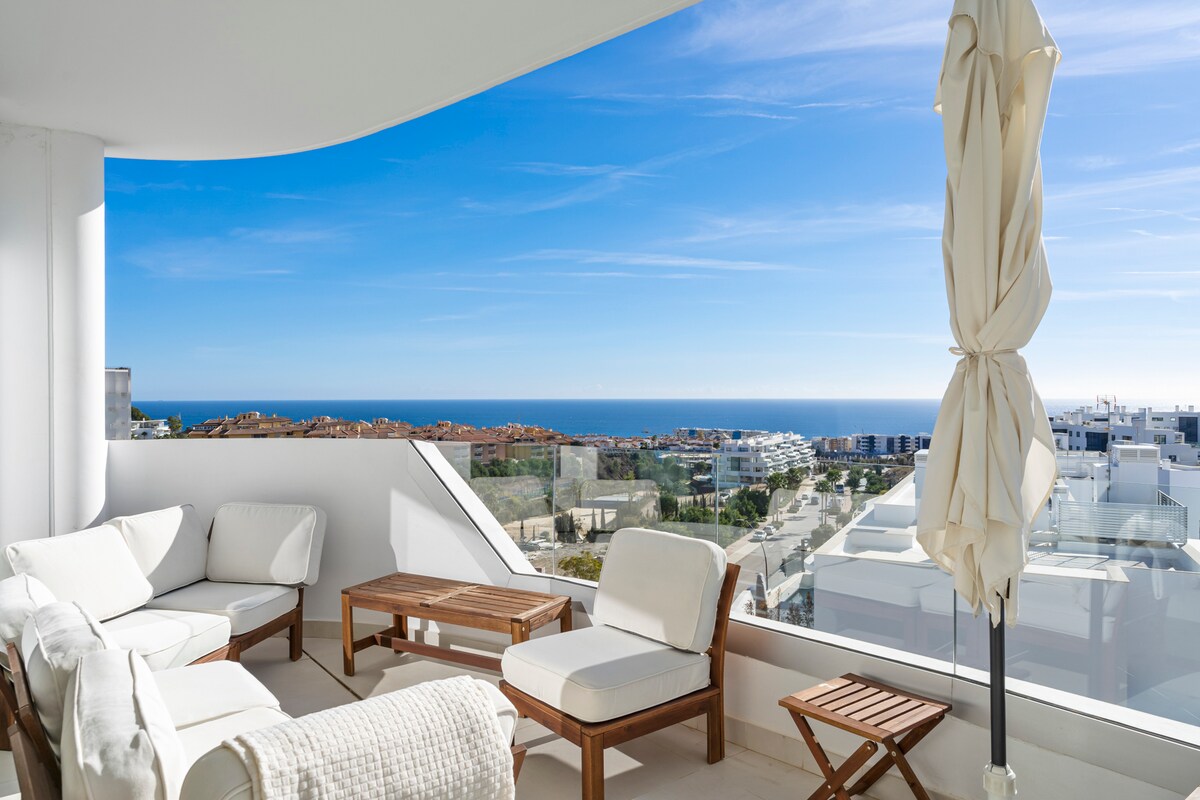 Nuestro ático de 270 m2 con jacuzzi, piscina comunitaria y aparcamiento se encuentra en el exclusivo complejo de Higueron. Disfruta de 180 grados con vistas al mar, a poca distancia de playas de arena. Hotel Hilton Higueron de 5 estrellas cercano con piscinas, gimnasio ultramoderno, el mejor en la costa Naguomi Spa, restaurantes, canchas de tenis de pádel y club Wave Beach. Pase de semana para acceder. El autobús de traslado gratuito se detiene frente a la casa y te lleva a la playa, al supermercado, a la estación de tren y al hotel. ¡Alojarse aquí es una experiencia única!