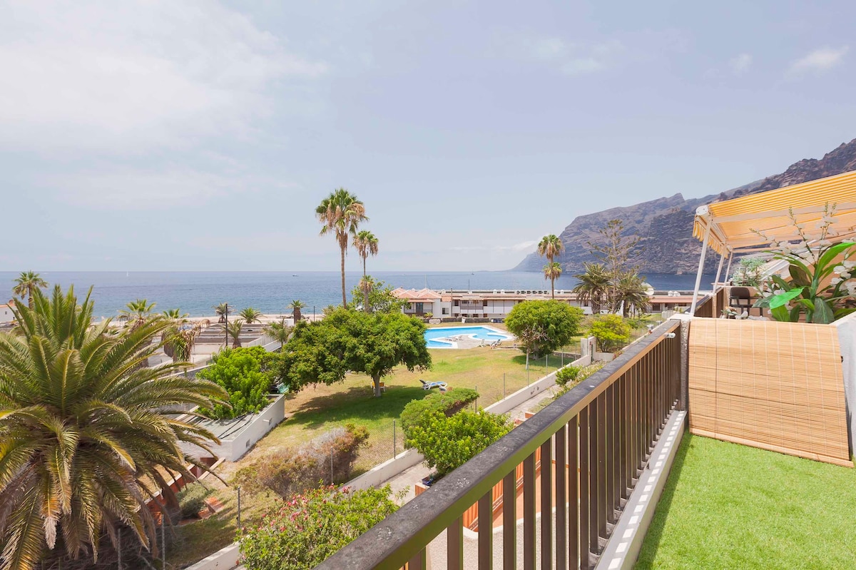 Precioso piso en Puerto Santiago con inmejorables vistas al mar y a los Acantilados de los Gigantes. Totalmente equipado con todas las comodidades, cuenta también con piscina y jacuzzi en el complejo. A pocos metros de la zona comercial y a 150 metros de las piscinas naturales. Un paraíso para disfrutar con amigos o en familia.