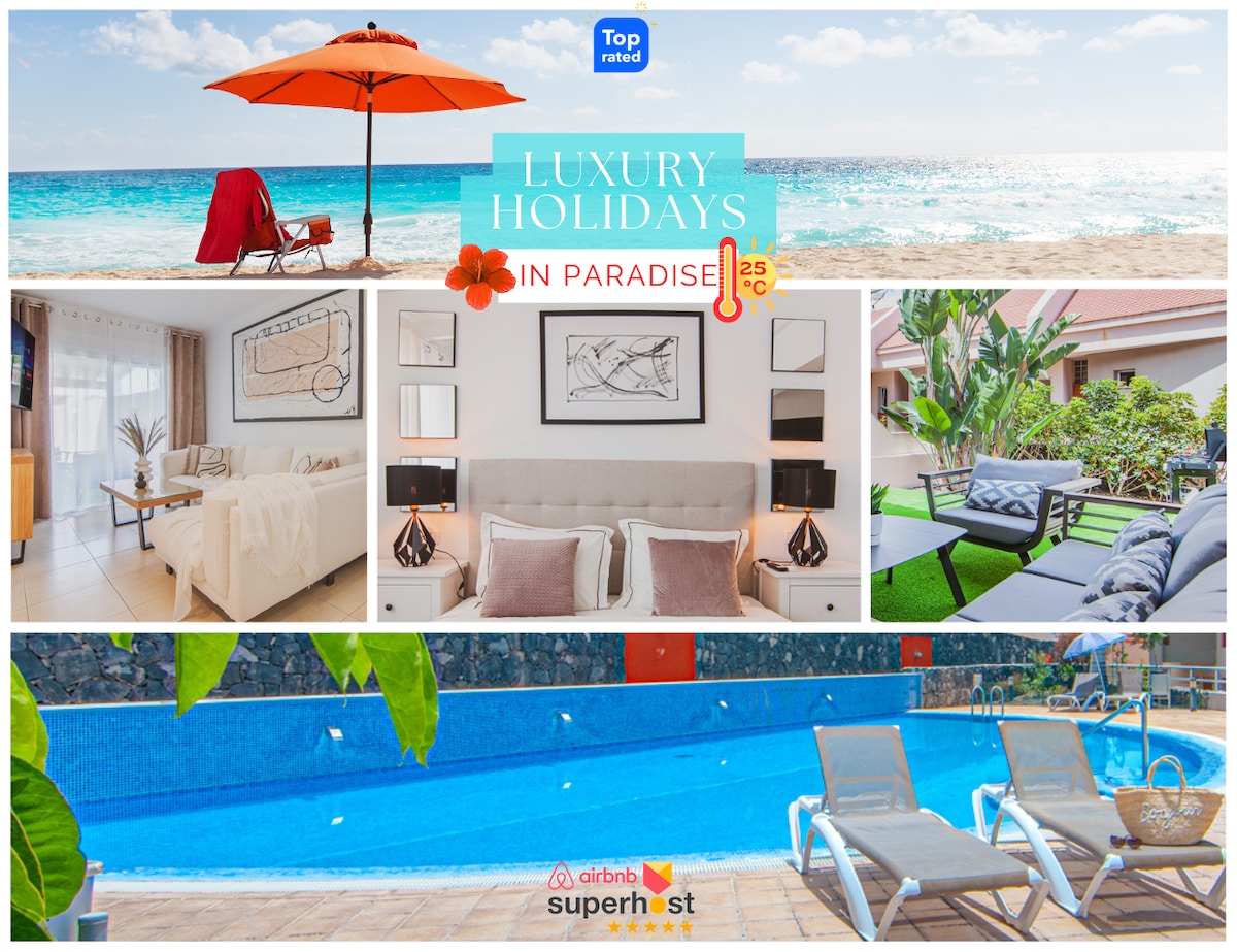 Esclusiva casa a schiera con terrazza e jacuzzi panoramica. Godetevi la sala multifunzione insonorizzata con cinema, PlayStation e area party! Relax assicurato con piscine condominiali, barbecue nel cortile tropicale e interni eleganti. Dotazioni premium: cucina completamente attrezzata, aria condizionata in ogni stanza, garage privato, Wi-Fi veloce e lavatrice/asciugatrice. L'ambiente perfetto per momenti indimenticabili con amici o famiglia, a breve distanza dalle attrazioni di Costa Adeje.