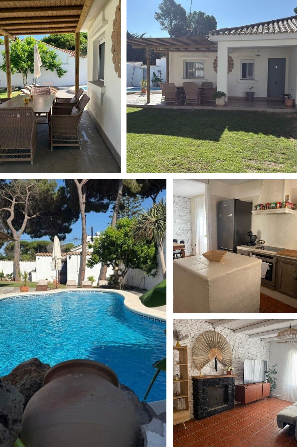 Traumhaftes Haus mit Garten und beheizbarem Pool, fussläufig in ein paar Minuten zum La Barrosa Strand und 3 Minuten zu den Golfplätzen von Novo Sancti Petri. Ideal für anspruchsvolle Paare oder Familien. Verbringt den Urlaub in einem Haus mit geheiztem Pool, einem Masterbedroom mit angrenzendem Bad und 2 Schlafzimmern mit separatem Bad. Einem Wohnzimmer mit Kamin und TV. Der Aussensitzplatz mit BBQ ist von der komplett eingerichteten Küche direkt erreichbar. Im Haus gibt es WLAN.