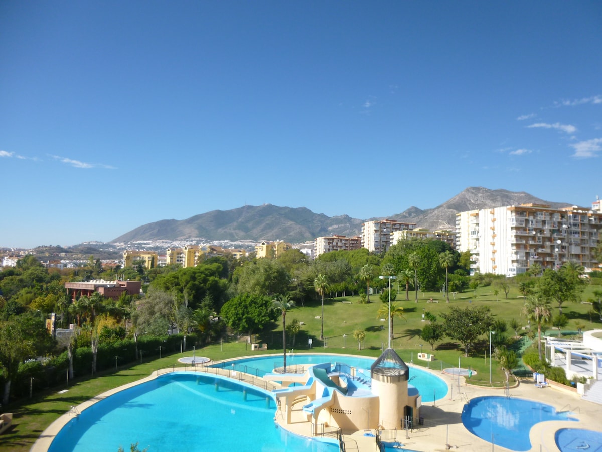'HOME' AWAY FROM HOME How home should feel: A brand new fully renovated apartment with all amenities needed. At a 4 min walk away from the beach and 10 min walk away from the train station (Montemar Alto). Flat located on the 2nd floor with elevator facing the interior garden and the pool and peaceful surroundings. Fully equipped new kitchen, 1 terraces, AC units in all rooms and a new designer bathrooms, FREE WiFi and TV 4K with SmartTv