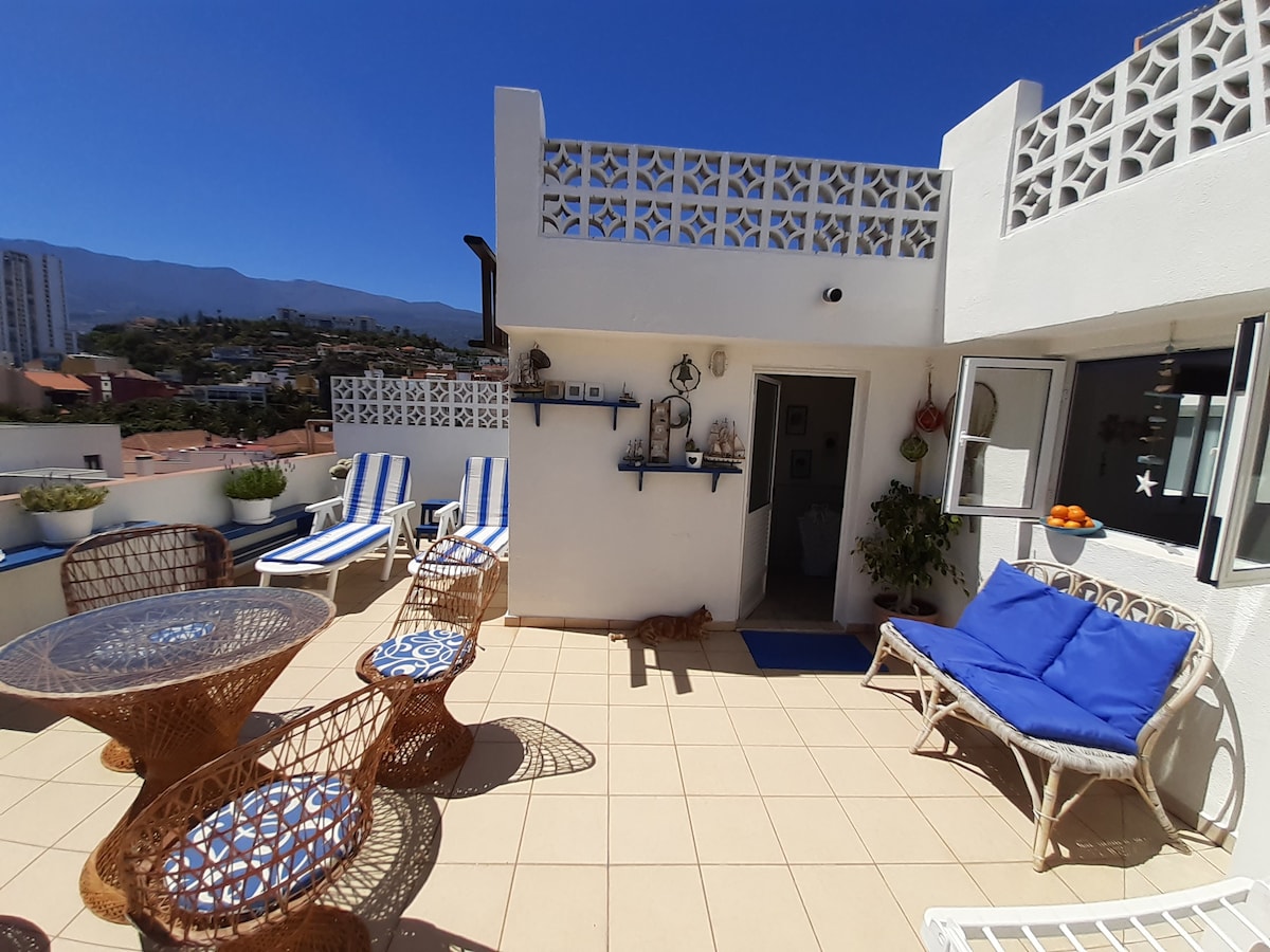 Nuestro apartamento goza de unas maravillosas vistas al mar. Es muy amplio, luminoso y cómodo. Ideal para pasar unos días de relax y tranquilidad, aunque también está muy cerca de la playa del arenal, donde puedes practicar surf o sencillamente salir de paseo y disfrutar de las vistas de Bajamar y Punta del Hidalgo. Te va a encantar mi espacio por las vistas, el espacio acogedor, la cocina, y la ubicación. Mi alojamiento es bueno para parejas, aventureros y amantes de la naturaleza