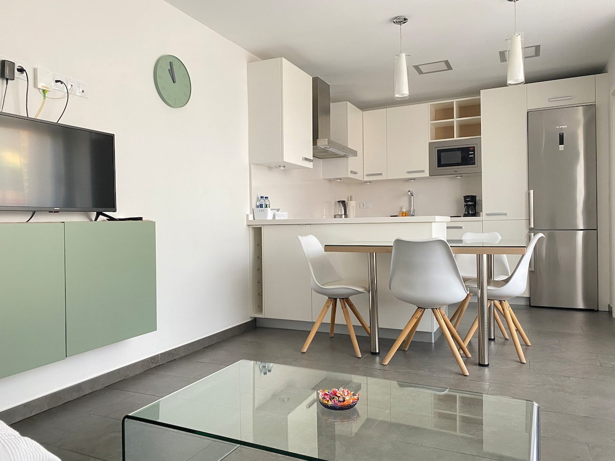 Acogedor y totalmente equipado Palm Suite frente al mar, con acceso directo a la playa 10m, Ideal para los amantes del mar. Muy iluminado y con increíbles vistas. Zona muy tranquila y turística del sur de Tenerife. Alquiler de bicicletas, Excursiones, Supermercado, restaurantes, farmacia, panadería, Centro comercial Rosa Center, muy cerca. Relájate y desconecta en este alojamiento tranquilo y elegante.