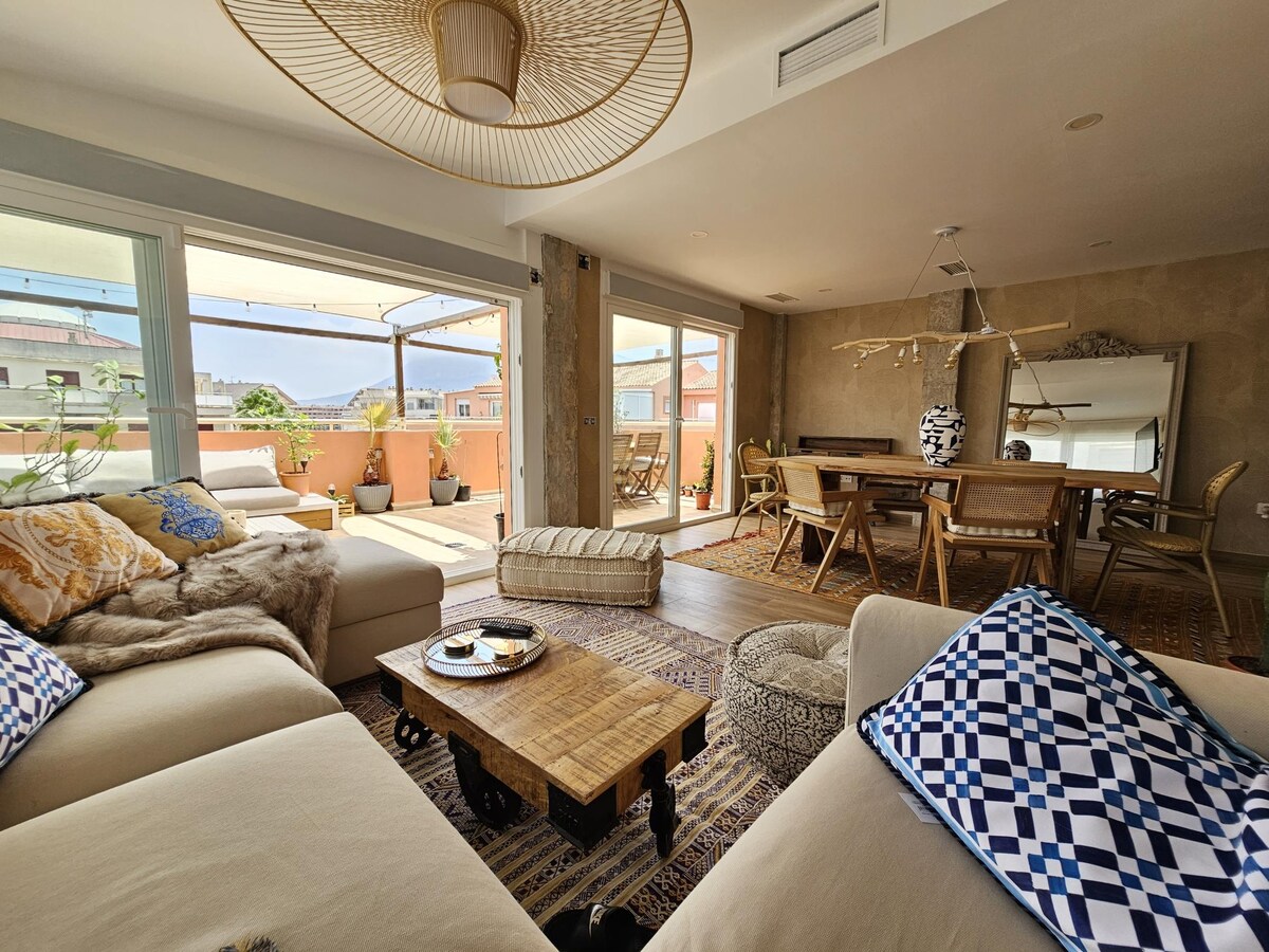 Si sueñas con despertarte frente al puerto de Dénia, contemplar los primeros rayos del sol sobre el mar o ver cómo el cielo se tiñe de colores al atardecer, este es tu lugar. Te abrimos las puertas de nuestro apartamento, en la emblemática esplanada Cervantes, en pleno corazón de Dénia. Desde el salón disfrutarás de vistas panorámicas al puerto y al amanecer sobre el Mediterráneo. Desde los dormitorios, el Castillo de Dénia y el imponente Montgó te acompañarán al caer la tarde. ¿A qué esperas?