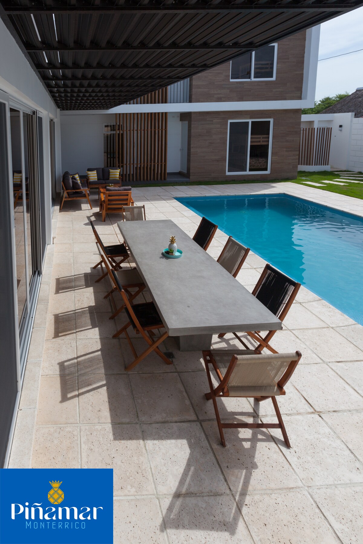 Con tu familia crea recuerdos inolvidables en esta casa en condominio seguro, con cocina moderna completamente equipada. Piscina privada grande con diferentes alturas para todas las edades, y múltiples sombrillas para tener sombra en la piscina. Acceso privado a la playa. Mesa de Ping-Pong, Juegos de niños y jardín de 500 metros para juegos al aire libre. Duerme cómodamente en 5 habitaciones con aire y TV, 16 camas en total. Parqueo para 4 carros dentro de la propiedad, más parqueos de visita.
