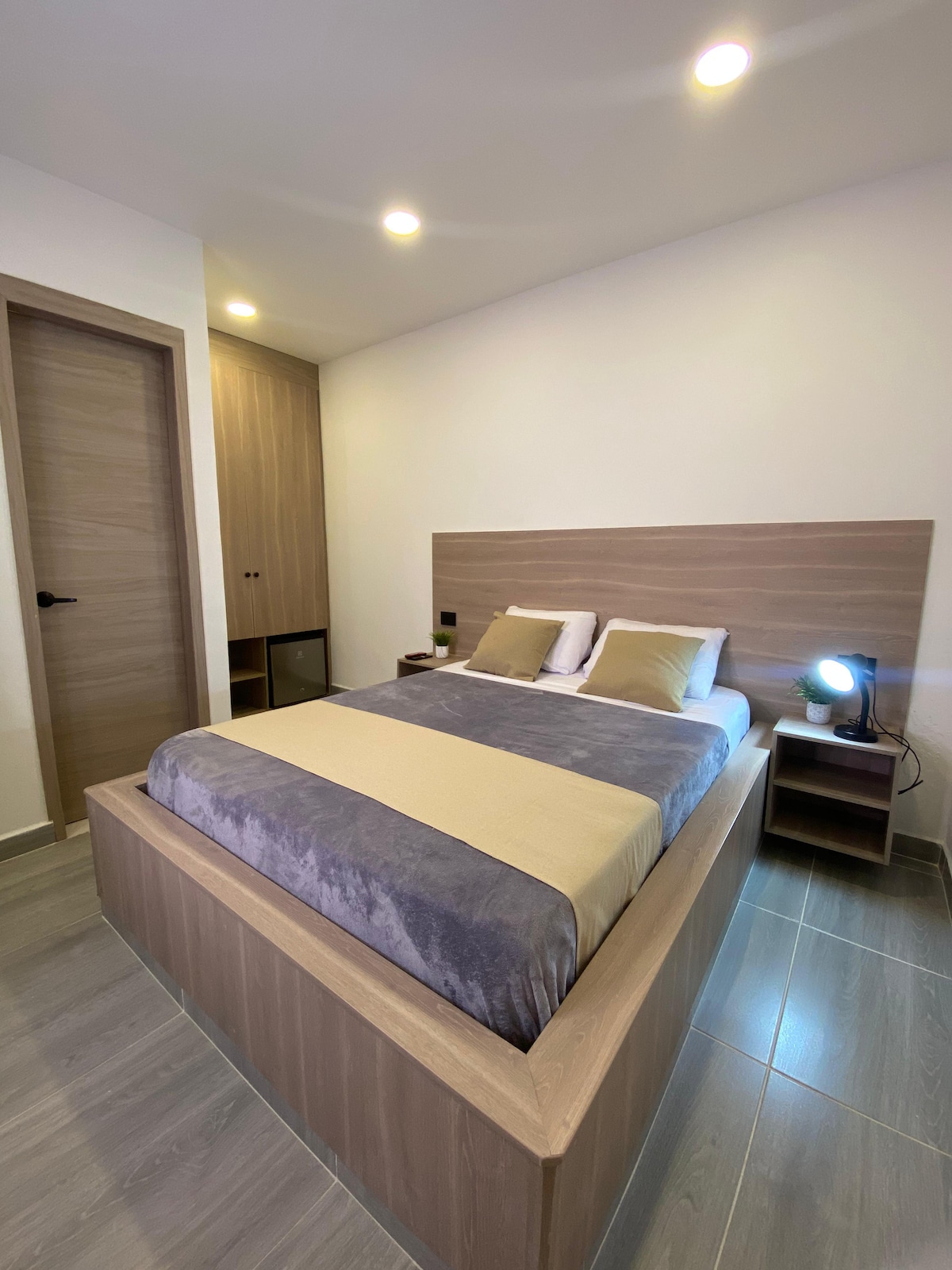 Habitación para 4 personas con baño privado y aire acondicionado. Tendrás acceso a toda nuestra zona social (piscina, jacuzzi, malla, bar, terraza) Perfecto espacio para disfrutar de unas vacaciones en familia o amigos. No apto para menores de edad room with capacity of 4 people with private bathroom and AC. You can enjoy about all our common areas in the hotel. (Pool, jacuzzi, big hammock, bar, relaxing living room and rooftop)