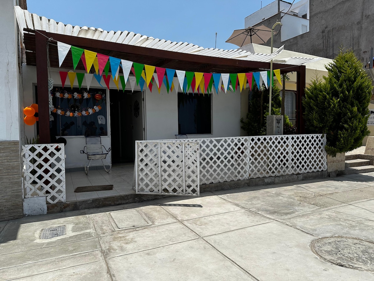 Descansa y escucha las olas del mar. Pasa unos días frente al mar, con el aire limpio y la tranquilidad de estar fuera de la ciudad. Alojamiento en un barrio tranquilo y céntrico. Muy cerca a la playa, tiendas y restarurantes. Ideal para gente que le gusta, montar bicicleta, correr, caminar, y observar aves disfrutando de una buena vista al mar. Cuenta con DIRECTV y Wifi (Claro): USER: Sanbar206 Password: sanbar1820 Tendras una inolvidable estancia fuera de la ciudad.