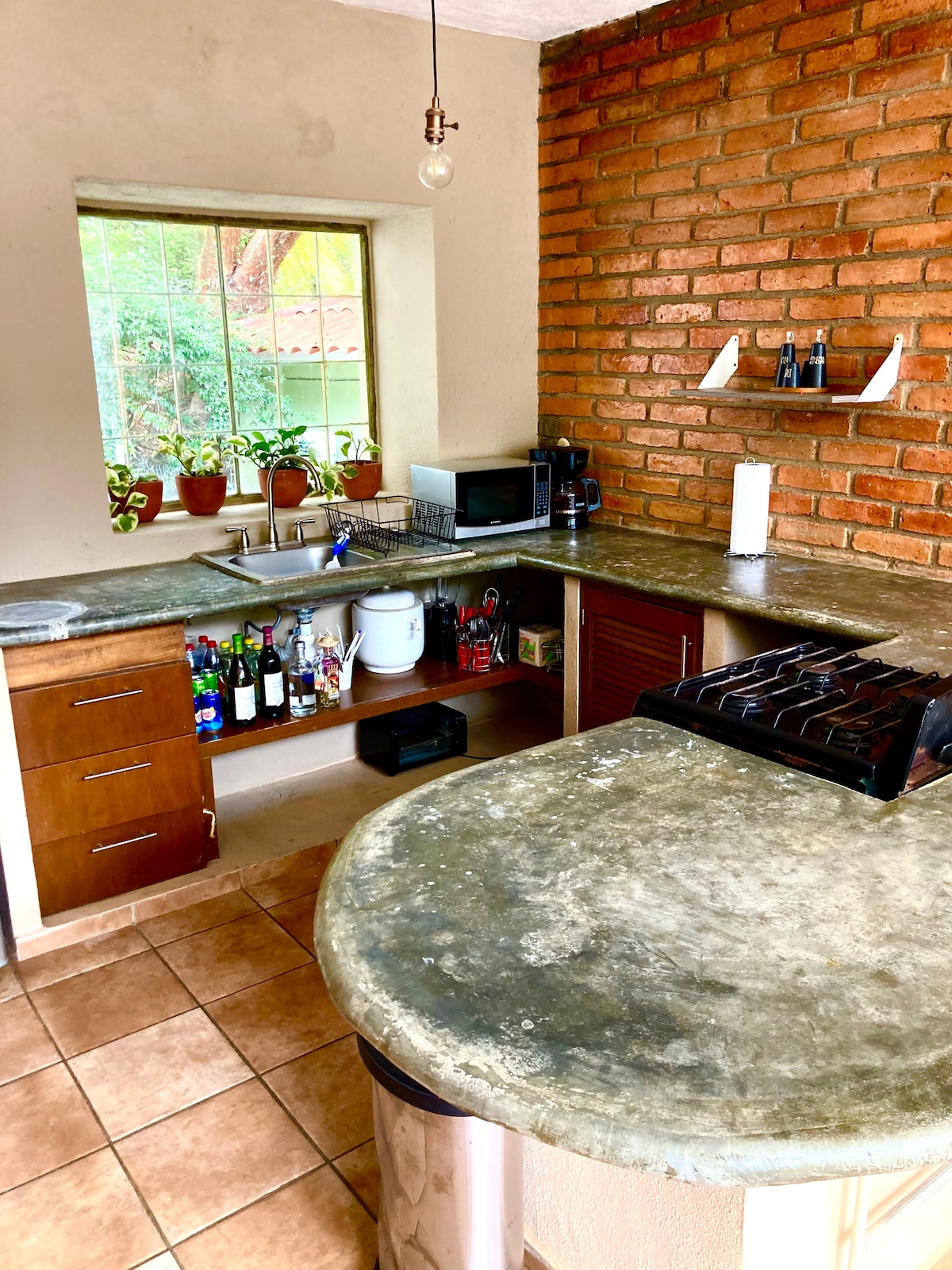 Hacienda Cereza is a beautiful two story home with 3 guest units. Each unit has a private entrance and shares an enclosed outdoor courtyard and small pool. This listing features the downstairs unit with a large A/C studio (2 twins or King bed) & an optional 3rd mattress, an ensuite bathroom, WiFi, ceiling fans, fully equipped kitchen, parking and beautifully landscaped grounds. Enjoy gorgeous sunrise views in a quiet south Sayulita neighborhood just a short 8 minute walk to the plaza and beach.