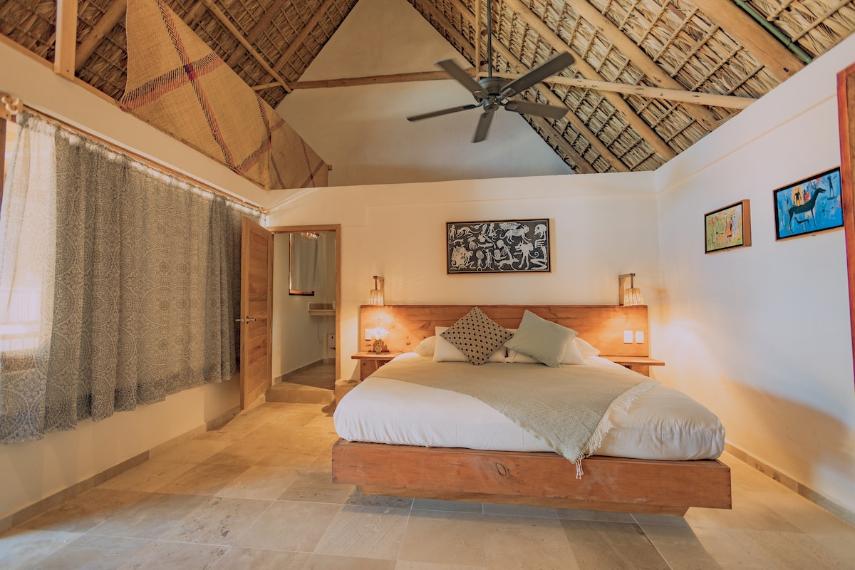 Bienvenido a tu casita privada en Tres Leches Zipolite, una propiedad íntima con 3 casas, una piscina y jardines. Camina hasta la playa y la ciudad en 10 minutos. Despierta con vistas al mar. Si tienes suerte, ¡verás ballenas desde la cama! Tenemos excelentes colchones e internet vía satélite Starlink. Tres Leches está en una colina corta pero muy empinada, ¡tus glúteos te lo agradecerán!