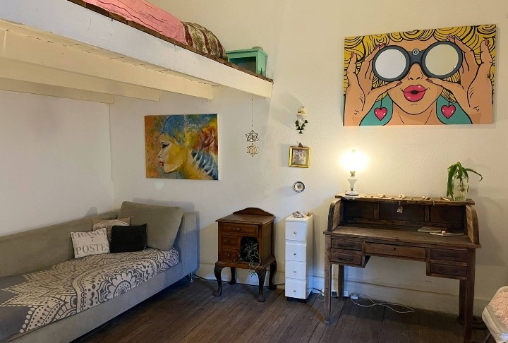 Suite Loft tipo cabaña amplio y totalmente equipado ubicado en el barrio de Caballito. Capacidad para 2/3 personas. Lugar tranquilo por ser contrafrente. Atención ingreso: 2 pisos por escalera. Sala de estar propia, cocina kitchinette y baño con ducha de uso privado, amplio lugar de guardado, termotanque eléctrico, aire acondicionado frío/calor, TV x cable, WiFi y patio compartido. Los espacios comunes (entrada, patio y lavadero) se comparten con la anfitriona y sus mascotas, dos gatos.