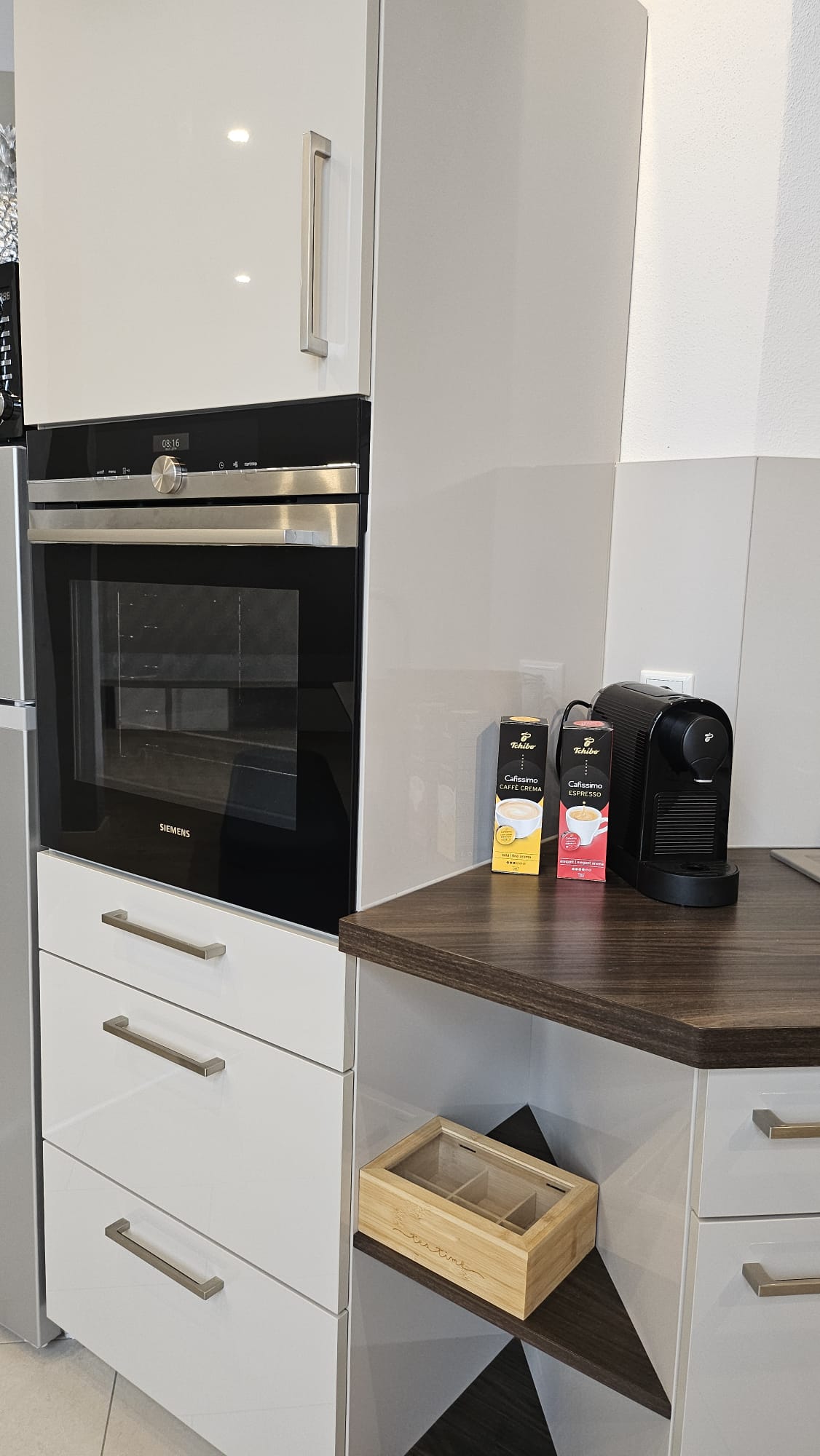 El amplio y luminoso apartamento de 100 m² con 4 habitaciones y un gran balcón ofrece todo lo necesario para una estancia confortable. Hay dos plazas de aparcamiento justo delante de la entrada. Todas las habitaciones son luminosas y están amuebladas de forma moderna. Todo el apartamento es muy luminoso, tranquilo y es ideal para descansar o trabajar. El baño luminoso y acogedor con ducha está equipado con toallas, gel de ducha y secador de pelo. Además, hay otro inodoro separado.