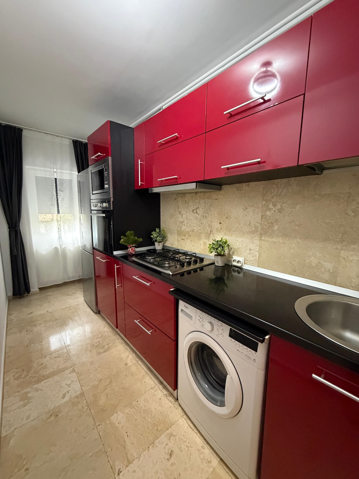 Separado, espacioso y luminoso. Wi-fi, aire acondicionado y TV en cada habitación, cocina totalmente equipada, con todo lo necesario para preparar/servir la comida, recientemente renovada y puesta en el circuito. Ropa de cama y toallas de repuesto. Lavadora automática. Hay disponibles servicios adicionales de limpieza y traslado al aeropuerto bajo petición. Restaurante en la misma calle (a 1 minuto) y supermercado 24 horas a 5 minutos a pie. ¡Esperamos poder darte la bienvenida! ❤️