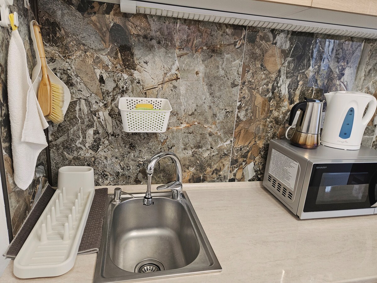 Nuestro moderno y cómodo estudio está en el centro de la ciudad de Ploiesti. Ideal para una estancia relajante e inolvidable, te ofrece todas las instalaciones que necesitas para sentirte como en casa. Tiene una superficie de 32 metros cuadrados y se compone de: Dormitorio con cama tamaño queen size y sofá cama Cocina. Baño Pasillo Balcón ¡Solo se puede fumar en el balcón! ¡De nada!